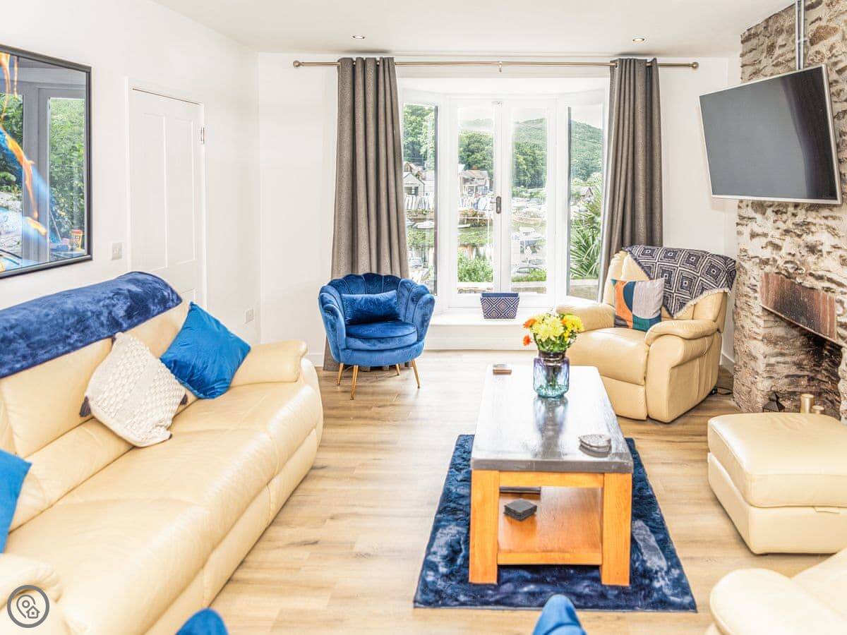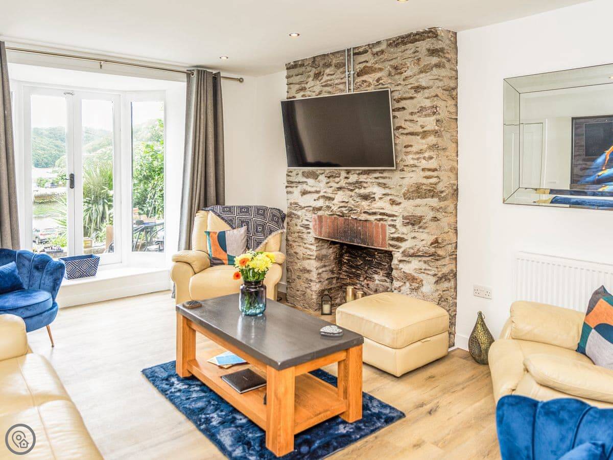 3 Mount Pleasant is in Looe. It's an end-of-terrace townhouse on the main road overlooking the river. The view right across to the town and harbour is really good. You're looking at it.