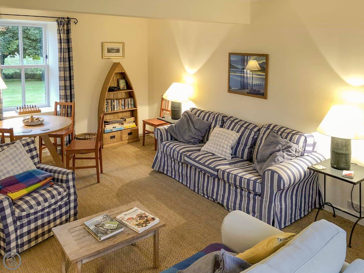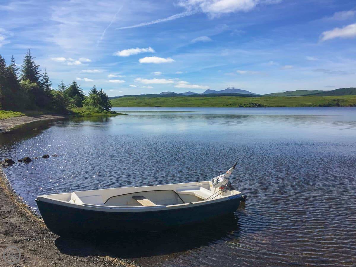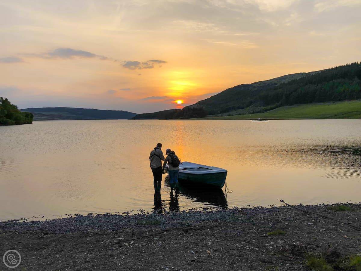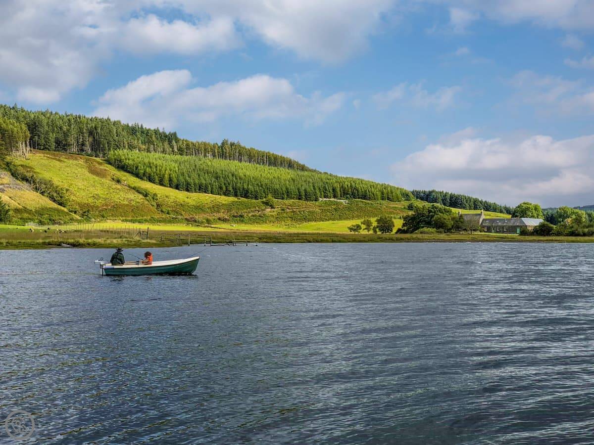 Outside, there's a garden and a patio. You get your own bit of the river with a small island and a waterfall. Free trout fishing is included in the loch. You can also hire a boat and gear from the owner if you want.