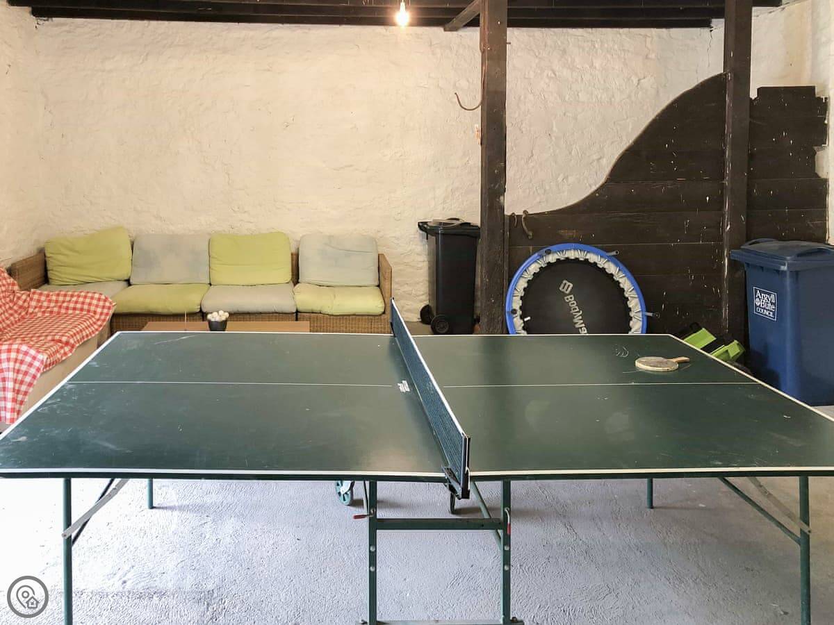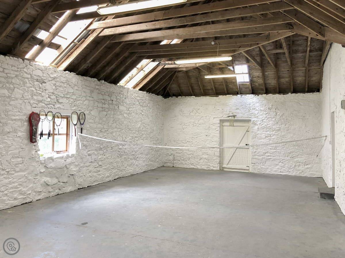 There's an old barn you can use. It's big enough for a game of badminton or to store bikes. The annexe has a table tennis table.