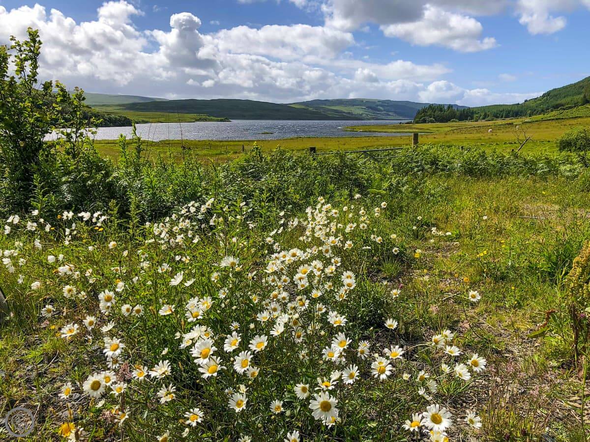 This is Ledmore. It's near the bottom of Loch Frisa on Mull, in Argyll. It's detached and you can't see any other houses from it. The place is surrounded by fields and a river runs past the garden.