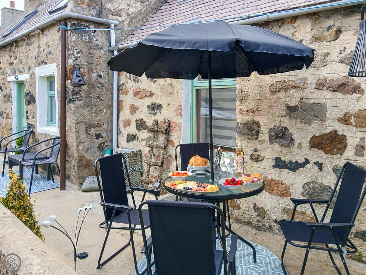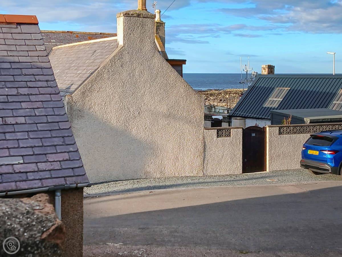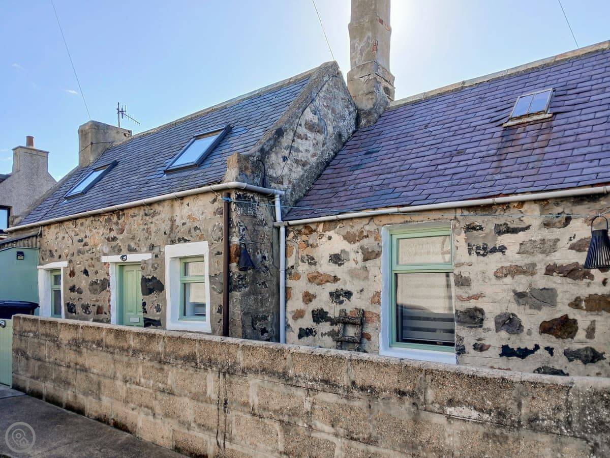 Puffin Cottage is in Inverallochy, right on the north east coast. It's a semi-detached house in a row of houses. You have your own enclosed garden. It's a short walk from there down to the beach.