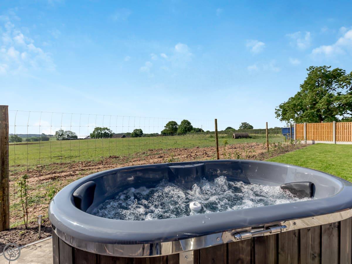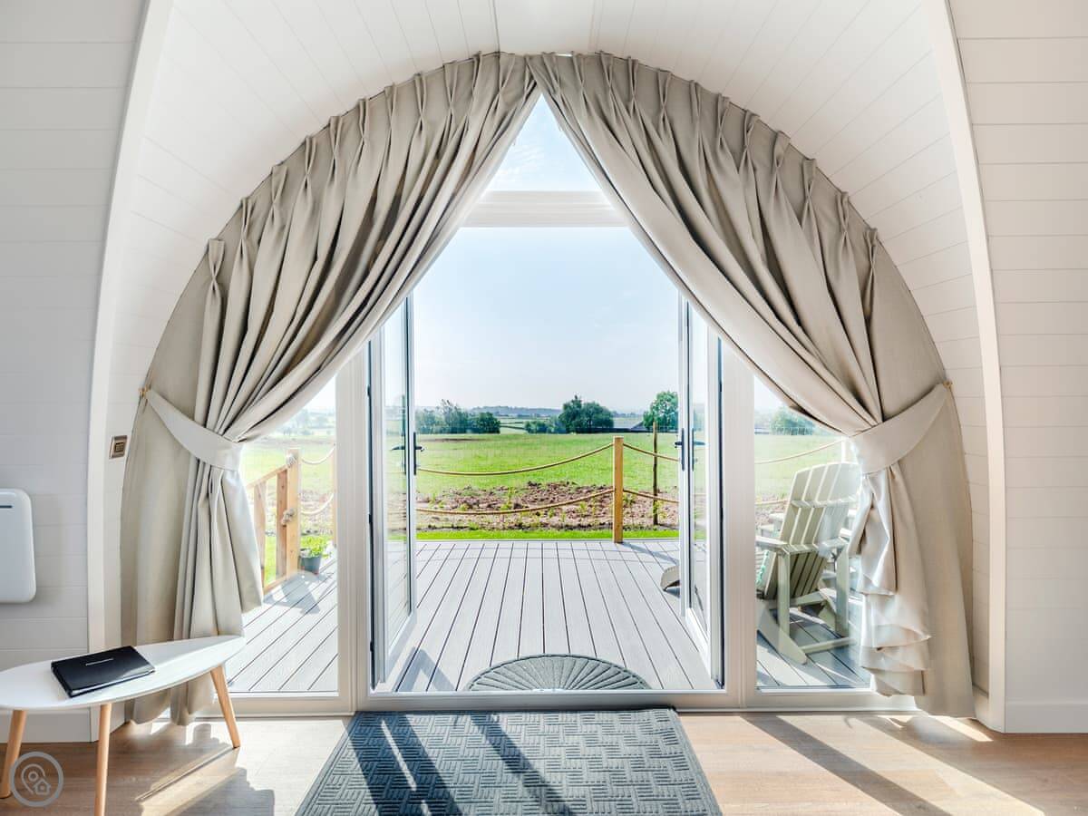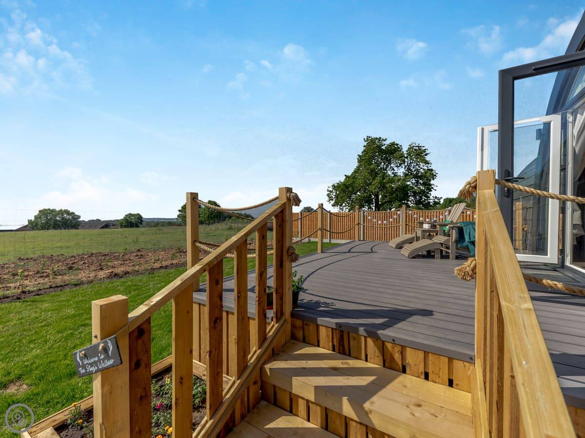 The Stag's Wallow is a lodge for two. It's at Muggintonlane End, near Ashbourne in Derbyshire. You're looking out over fields. It feels quiet.