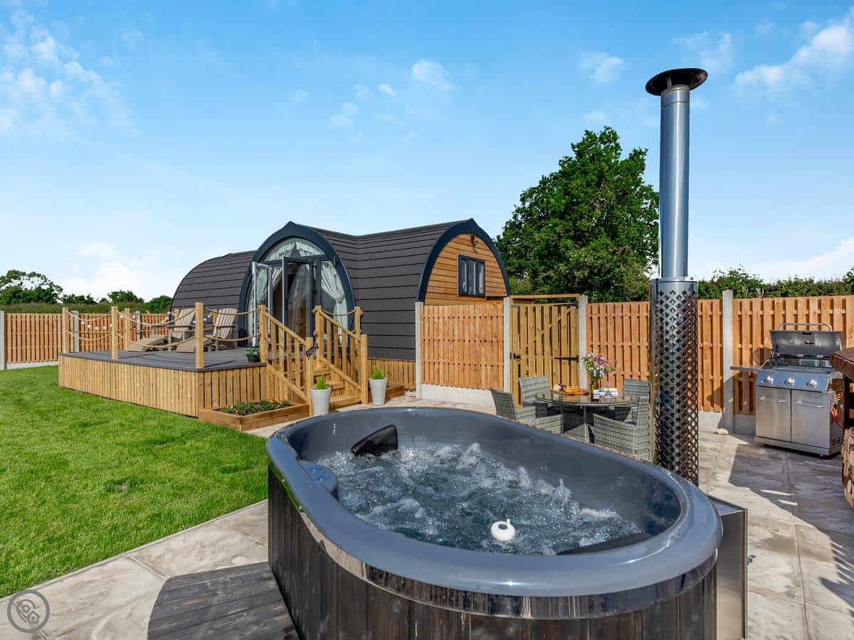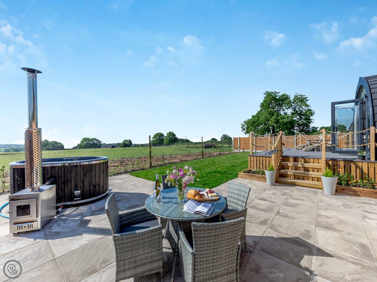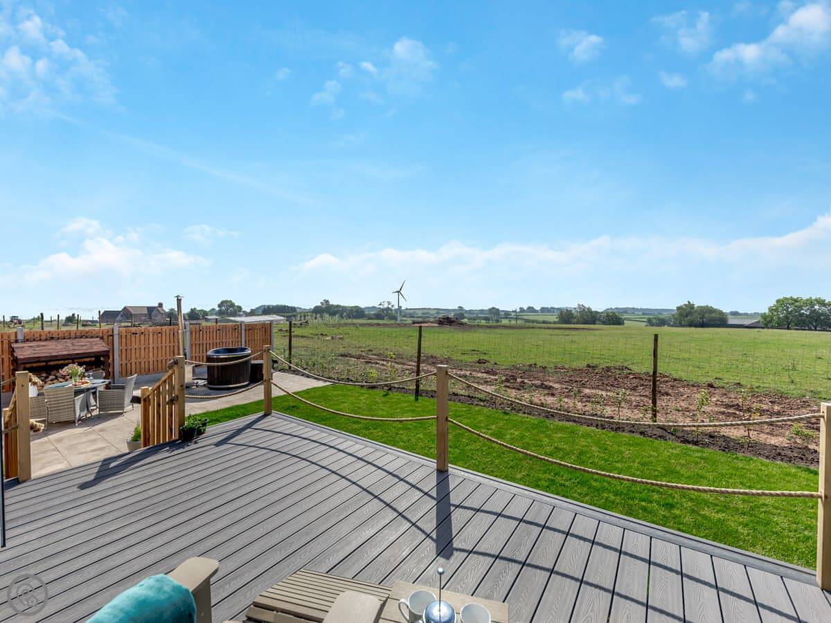 The Stag's Wallow is a lodge for two. It's at Muggintonlane End, near Ashbourne in Derbyshire. You're looking out over fields. It feels quiet.