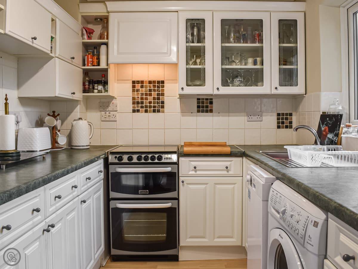 Inside, there's a washing machine, a dishwasher, and WiFi. All the bedding and towels are included.