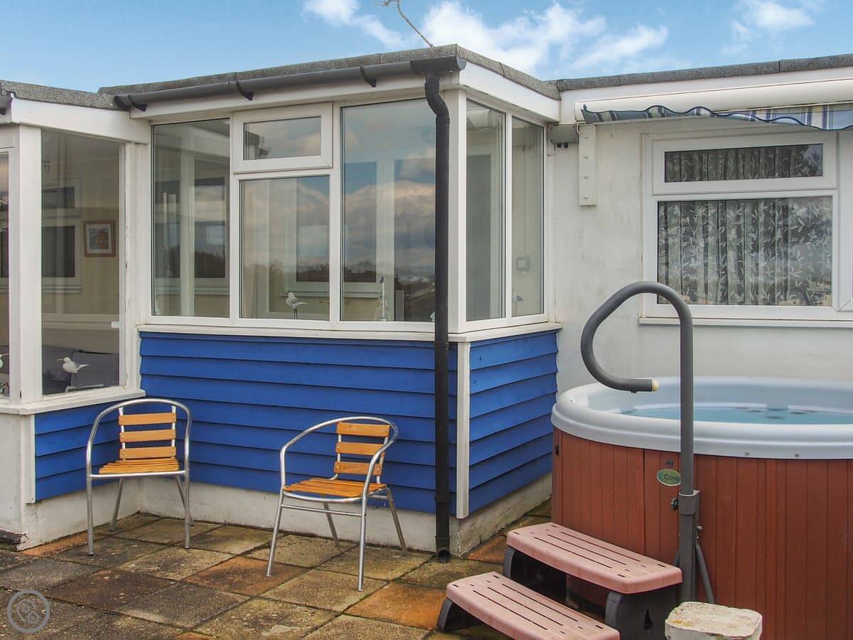 The garden is enclosed and private, with a patio area. There's a hot tub and a portable barbecue, which you're welcome to use. Parking is on the drive.