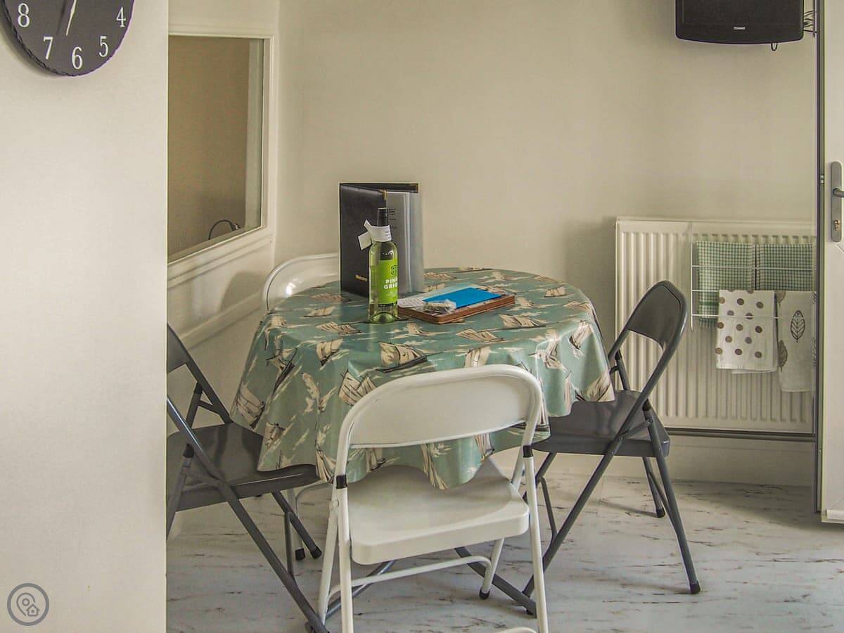 Inside, the kitchen is modern and has a dishwasher and washing machine. There's a dining table and a living area with a Smart TV. Bedding and towels are provided. We accept one well-behaved dog.