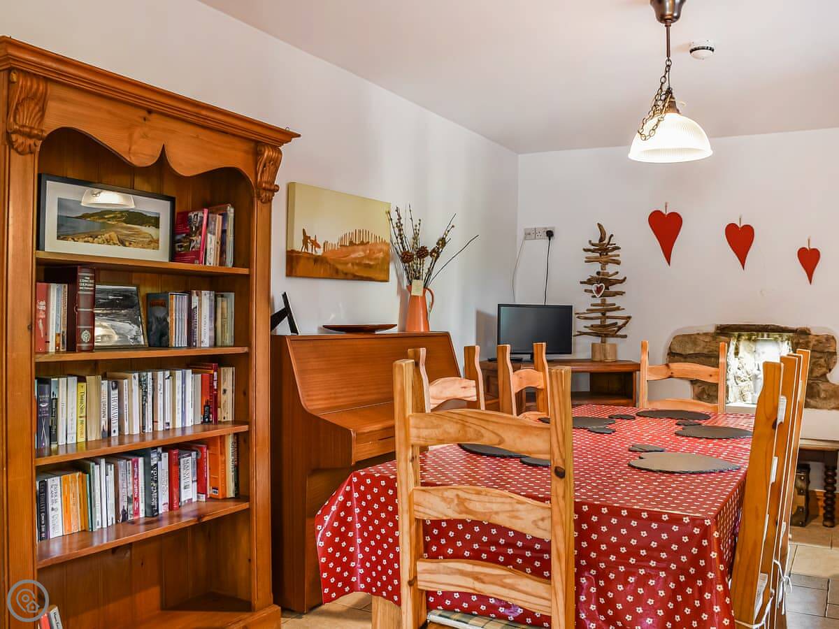 The living room has books and games. In the kitchen-diner there's a piano and a big table. The road up to the farm is private and a bit bumpy, just so you know. I live on the farm with my horses, so you might see them going past. Because of the horses, we can't allow any pets in the cottage, sorry.
