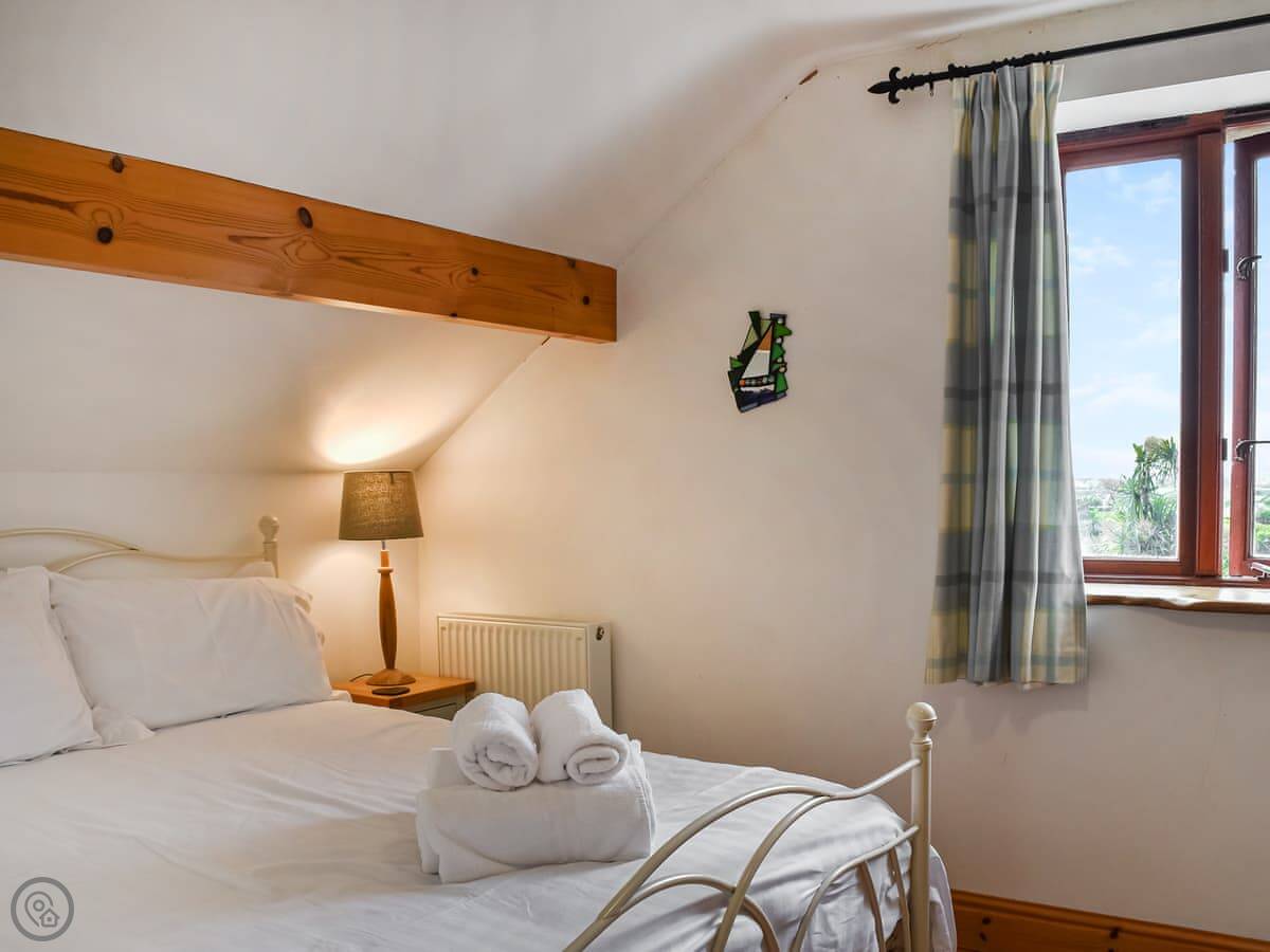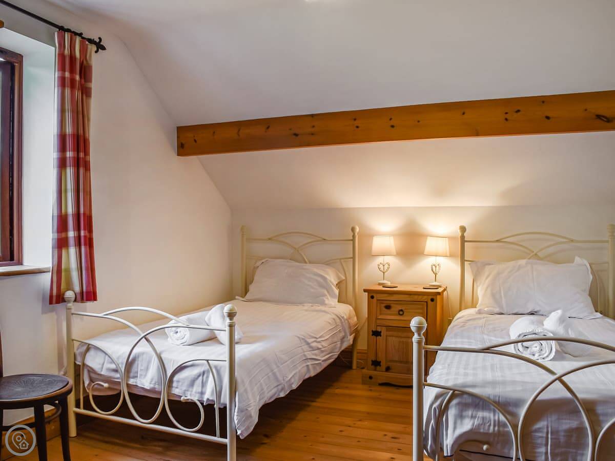 It sleeps four people. Two bedrooms and one bathroom. It's got a 4 Star rating, so it's comfortable and well-equipped. There's a washing machine, dishwasher, WiFi, and bedding is included. We can provide a cot and highchair if you need them.