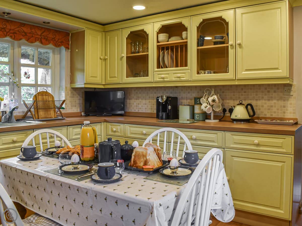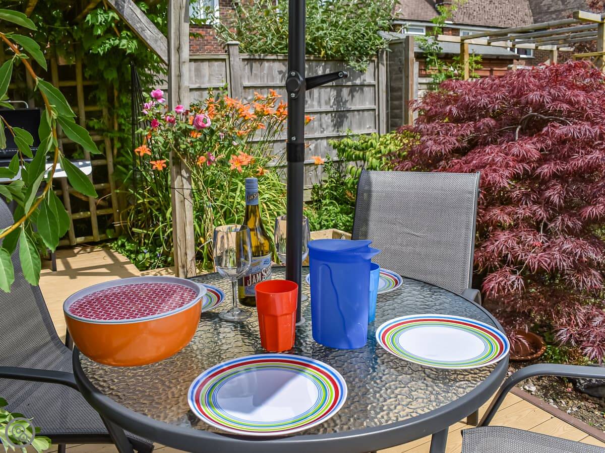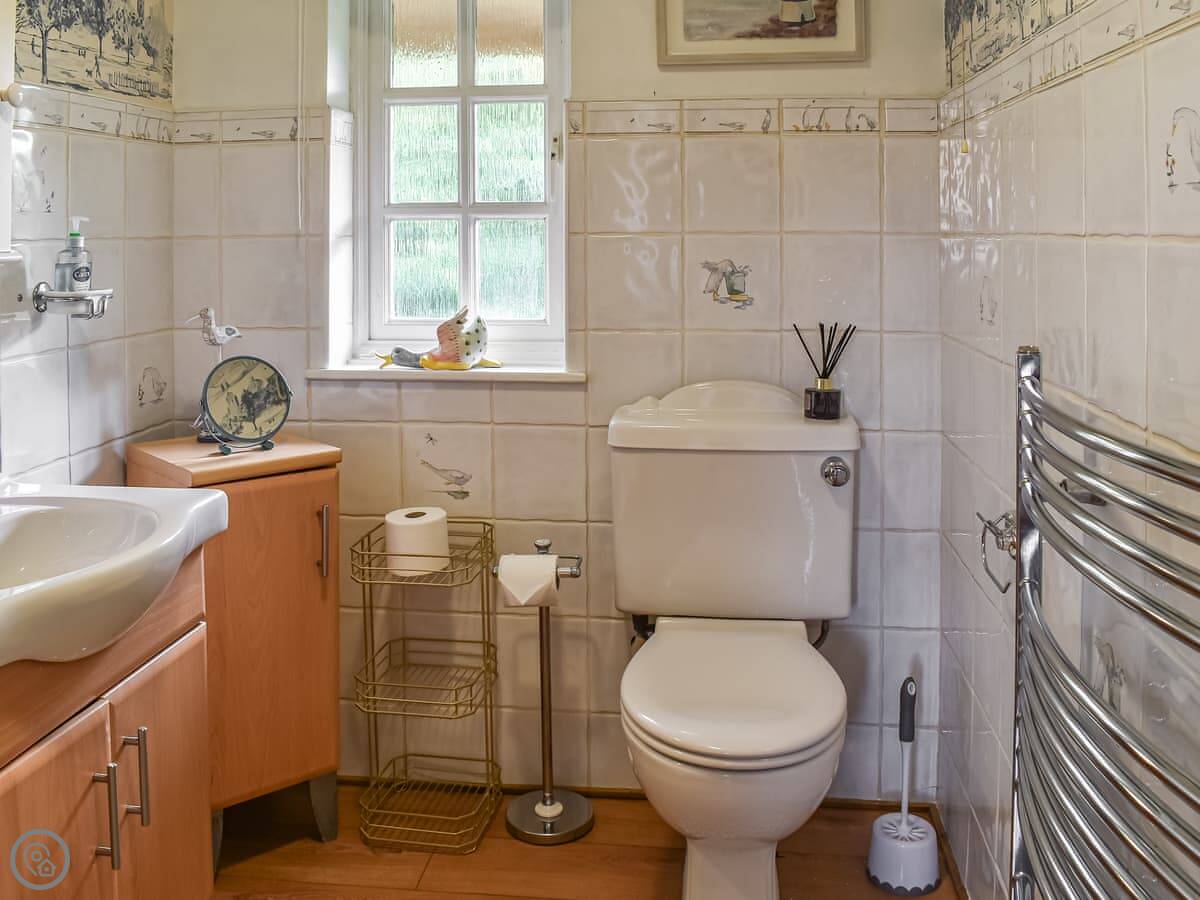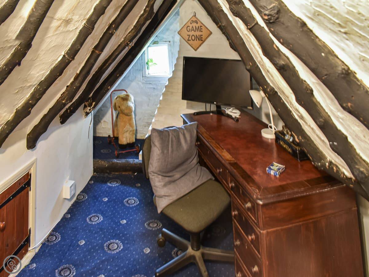 There's an electric stove in the living room that looks like a wood burner. It puts out a good heat. The garden has a separate little thatched building we call Noddies House. Kids seem to like it. It's just there, really.
