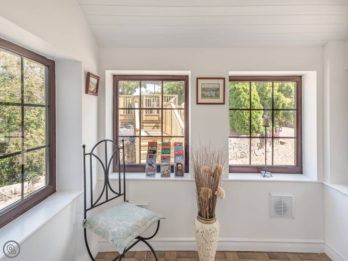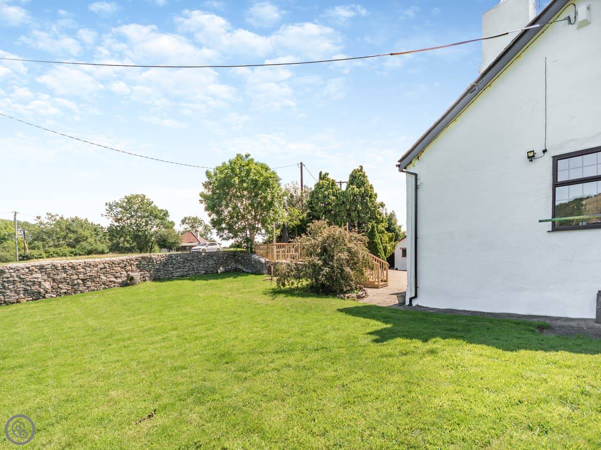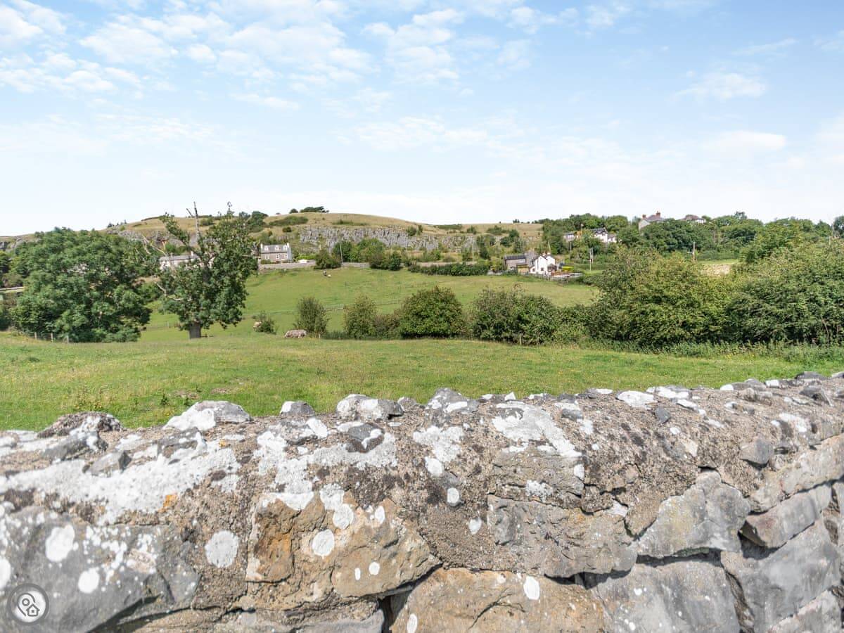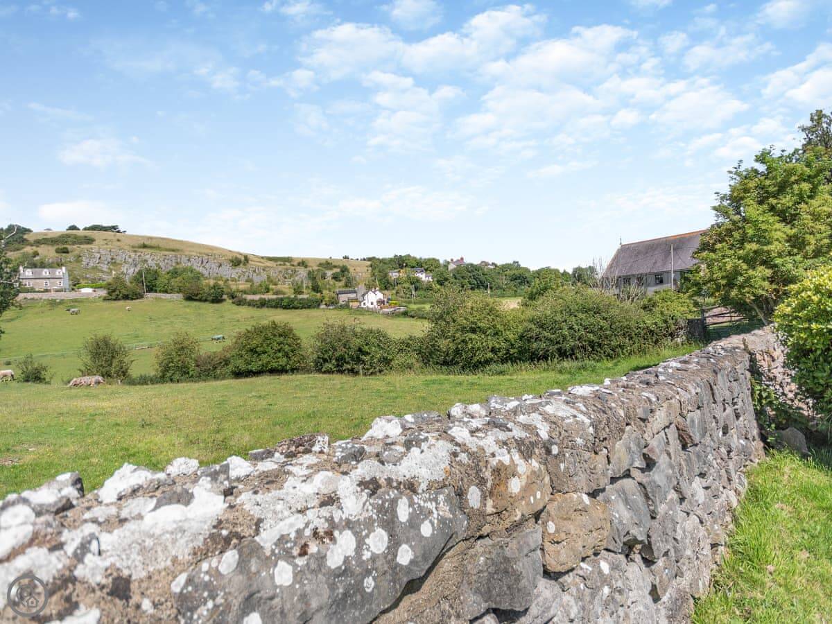 Hwylfa Ddafydd is near the village of Llysfaen, up a private lane. It's detached and sits on about an acre and a quarter of land. The views out over the countryside are good.
