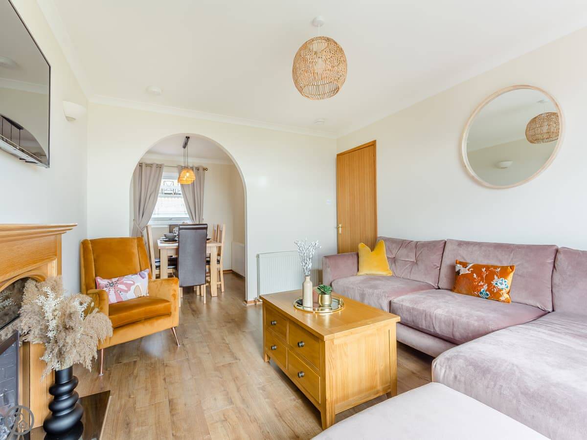 It sleeps six in three bedrooms. There's one bathroom. It has a 4 Star rating, which we keep it to. It's comfortable and clean. The living room is a good size for everyone to sit in. The kitchen has what you need.