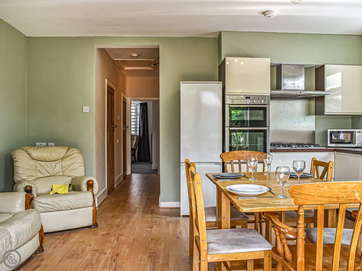 The main living space is open plan and leads out to the garden. The garden is private and west-facing, so you get the sun in the afternoon and evening. There's a patio area and a BBQ.