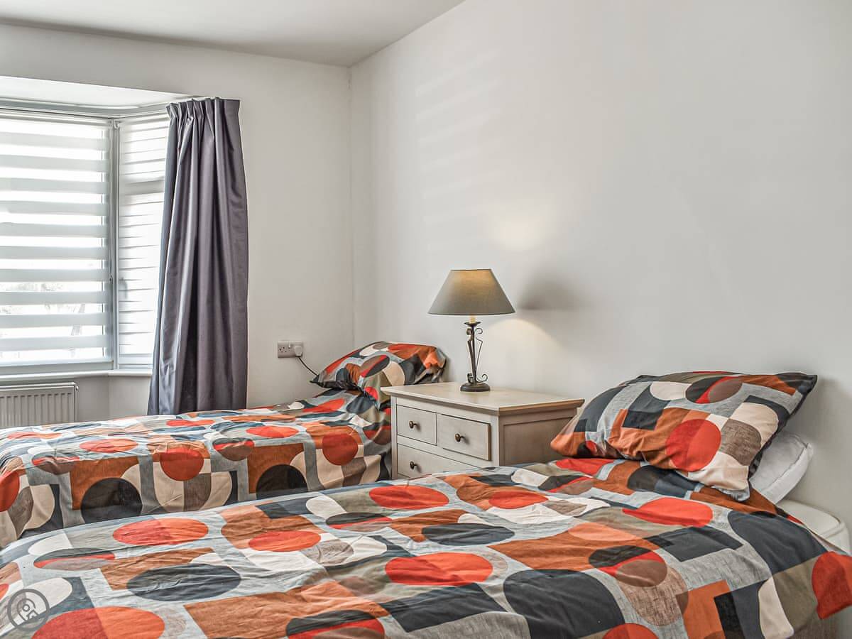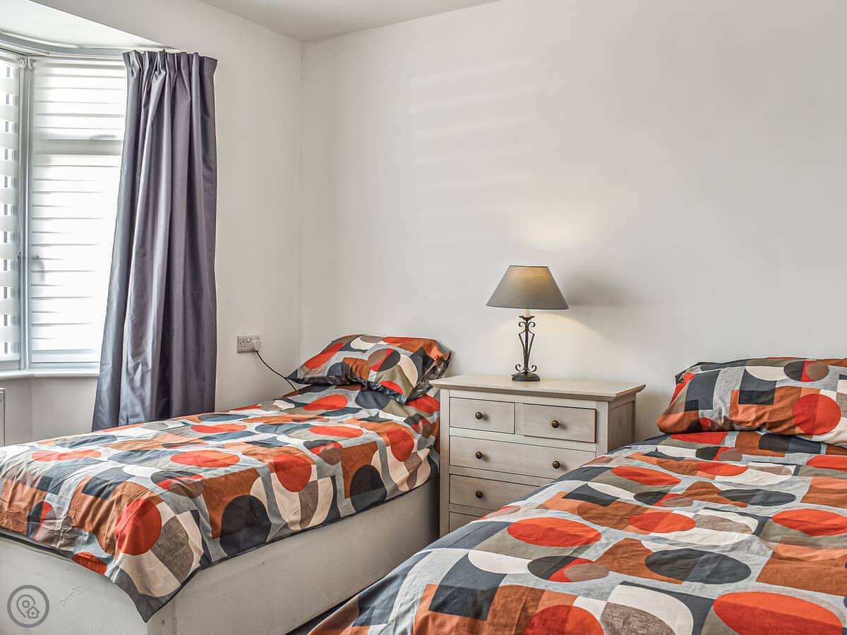Number 12 is a bungalow, so it's all on one level. It's detached, so no shared walls. It sleeps six, in three bedrooms. There are two bathrooms, which helps when there's a few of you.