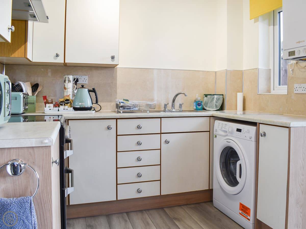 The garden is lawned. It's enclosed, so it's secure for kids. There's a washing machine, a TV, WiFi, and parking on the drive. Bedding and towels are included.