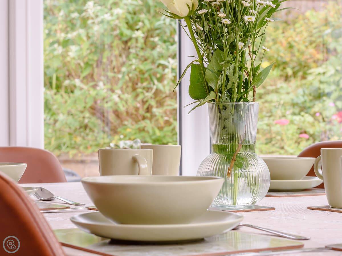 Inside, there's a living room and a conservatory that goes out to the garden. The kitchen has a dishwasher. The bathroom has a walk-in shower. We've put a washing machine and a dryer in the outhouse, along with space for bikes and hanging wet coats. That's quite useful round here.
