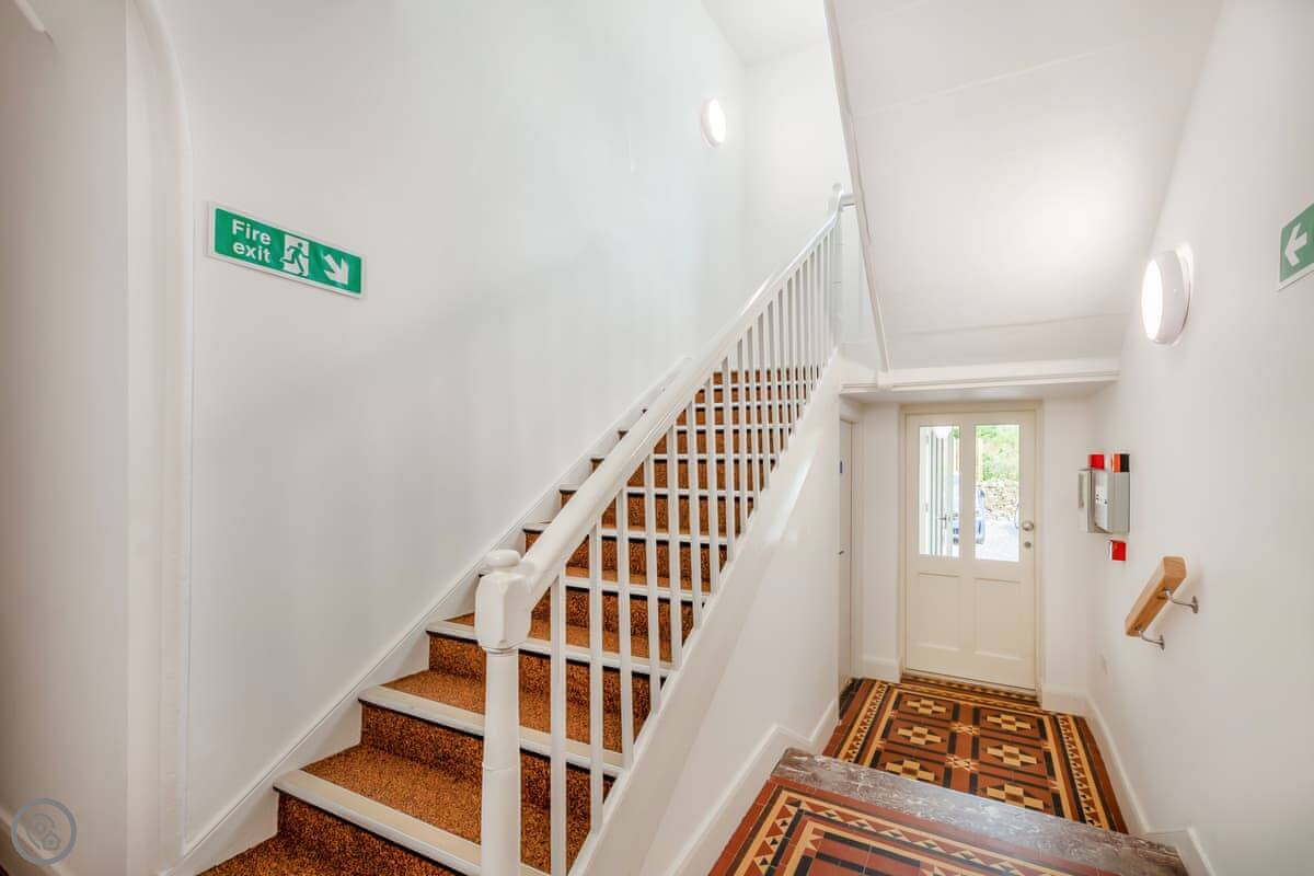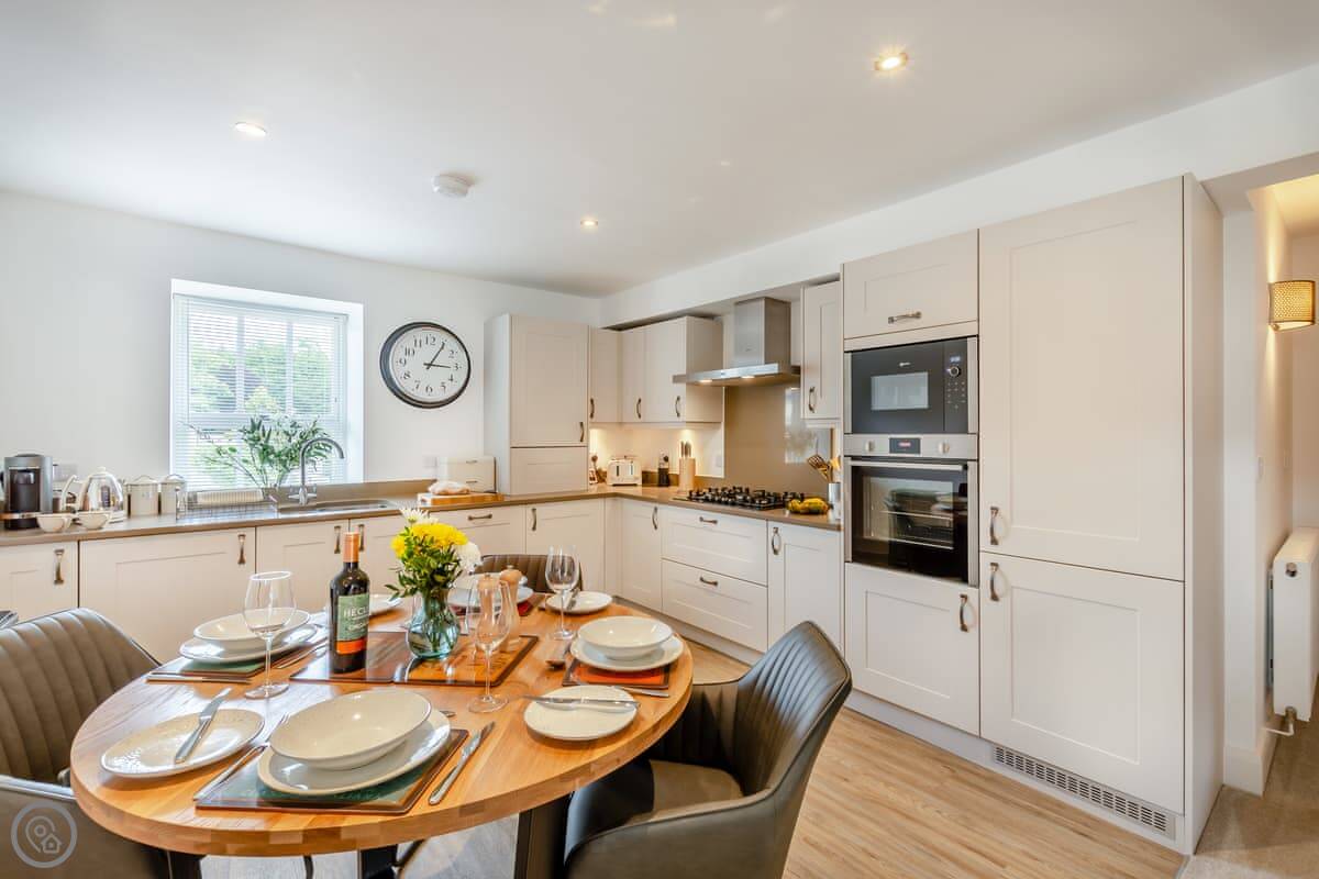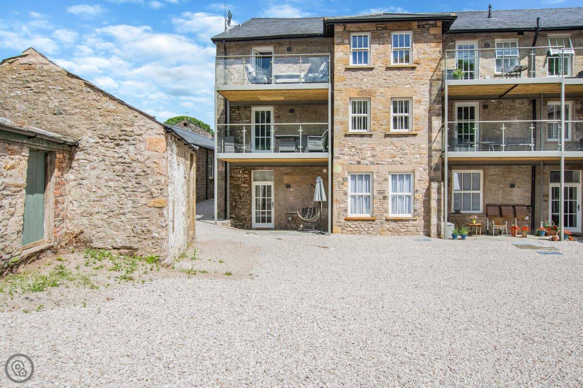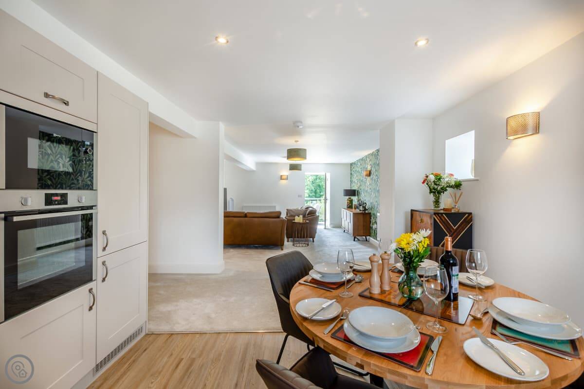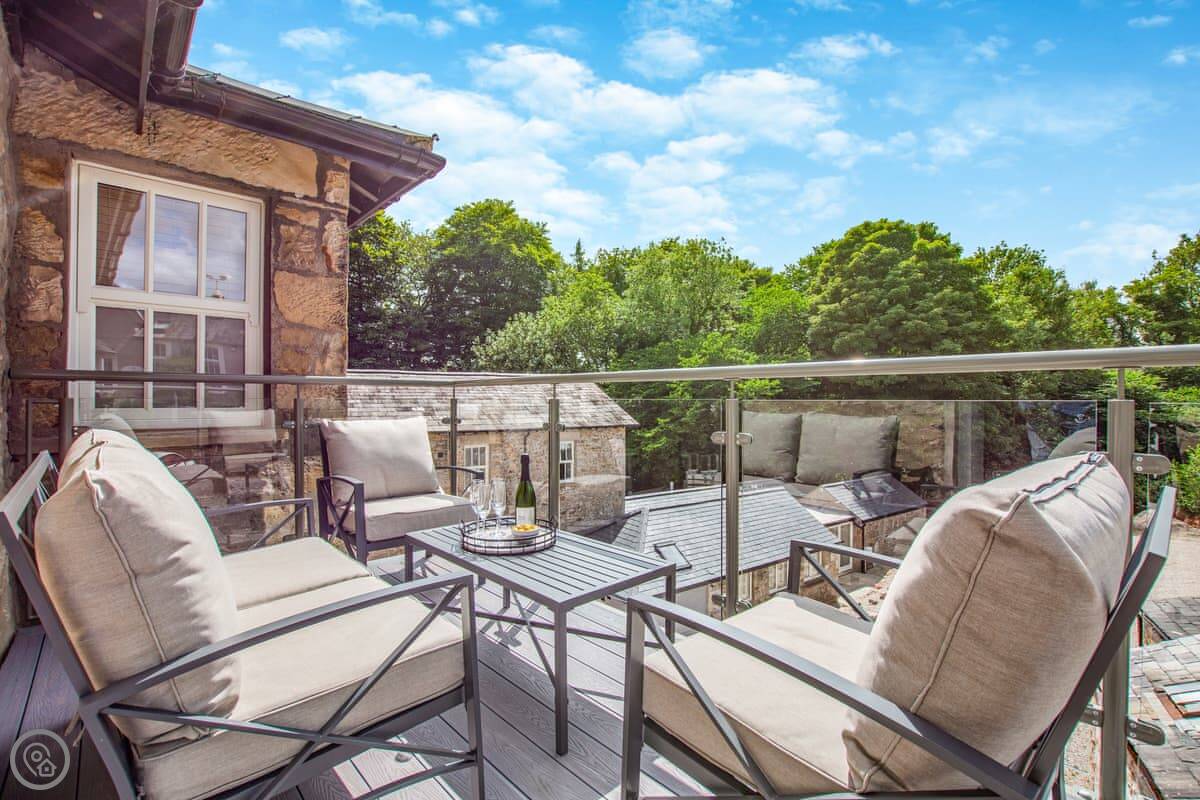 Bronte House is an apartment on Casterton's Low Wood development. It's on the second floor. The main thing is the balcony. It's big enough for a table and chairs and it's got a clear glass rail, so you get a good view out over the fields and hills.