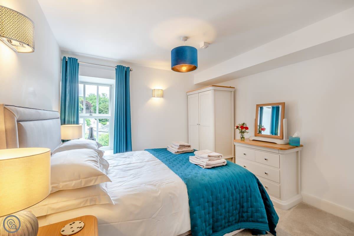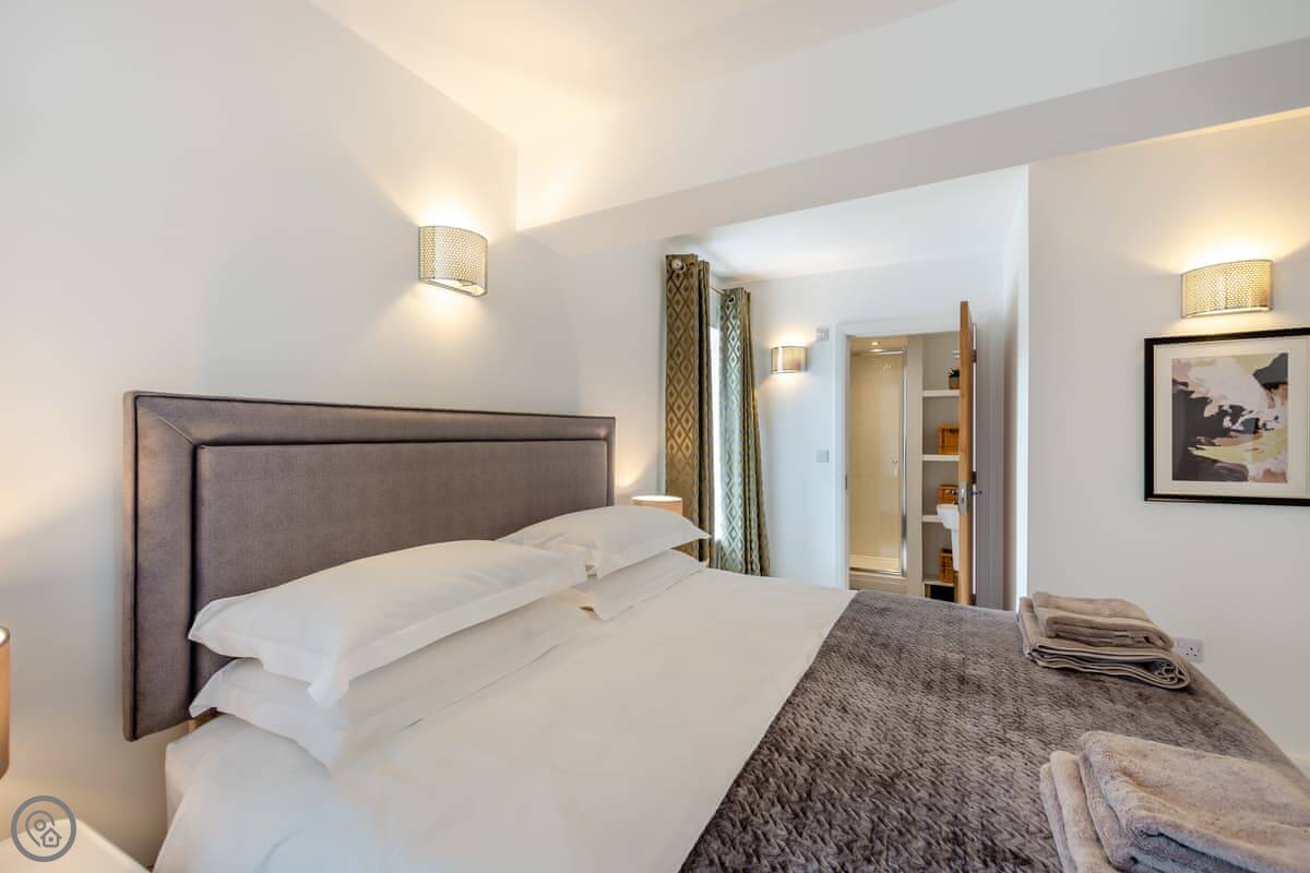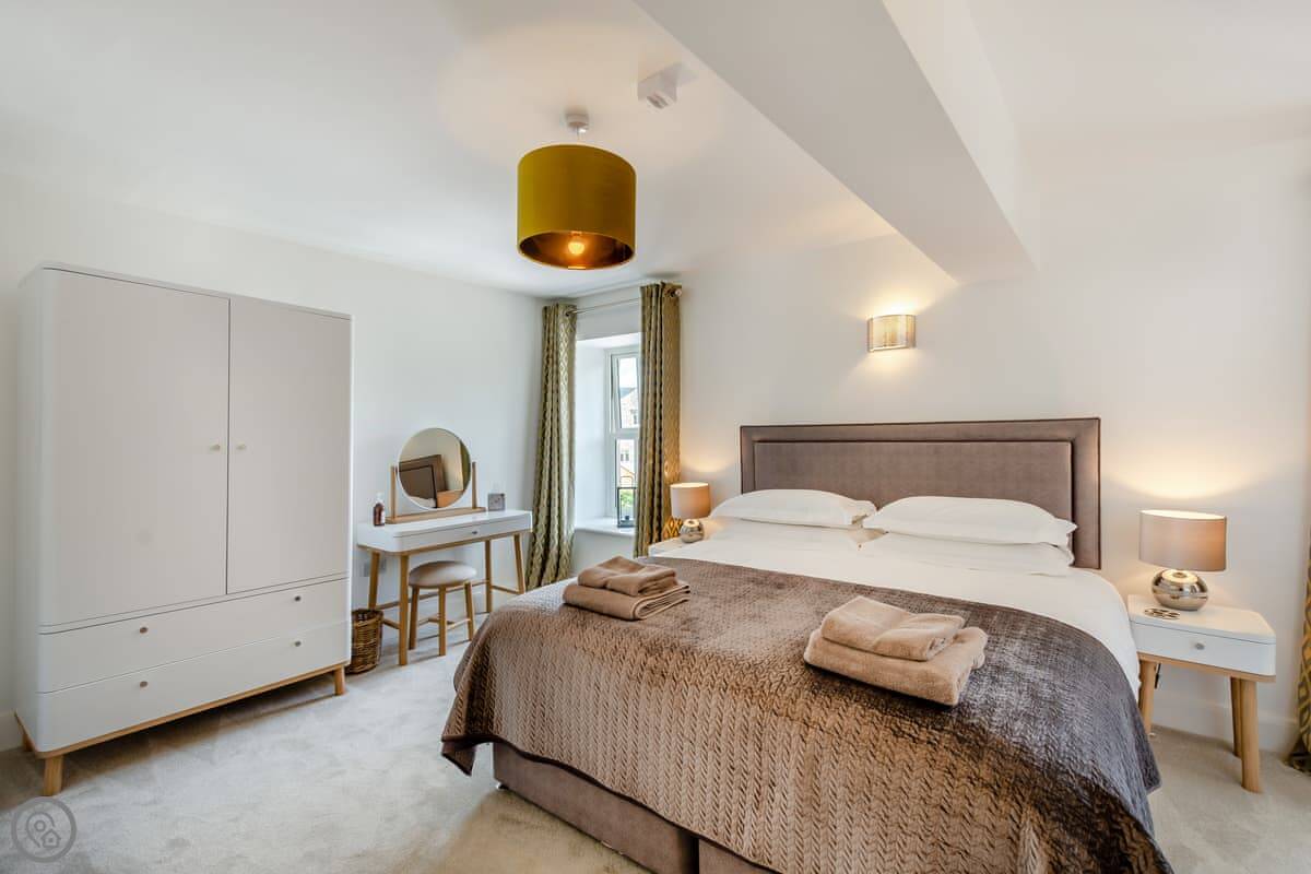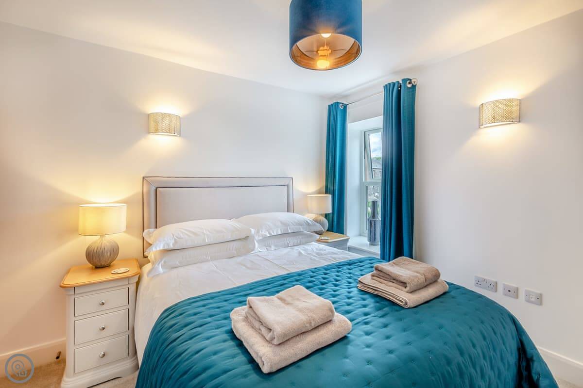 It sleeps four. Two bedrooms, two bathrooms. The rating is 4 Star. It's nicely done, new fittings, that sort of thing. The main bedroom has a big bed that splits into two singles if you need it.