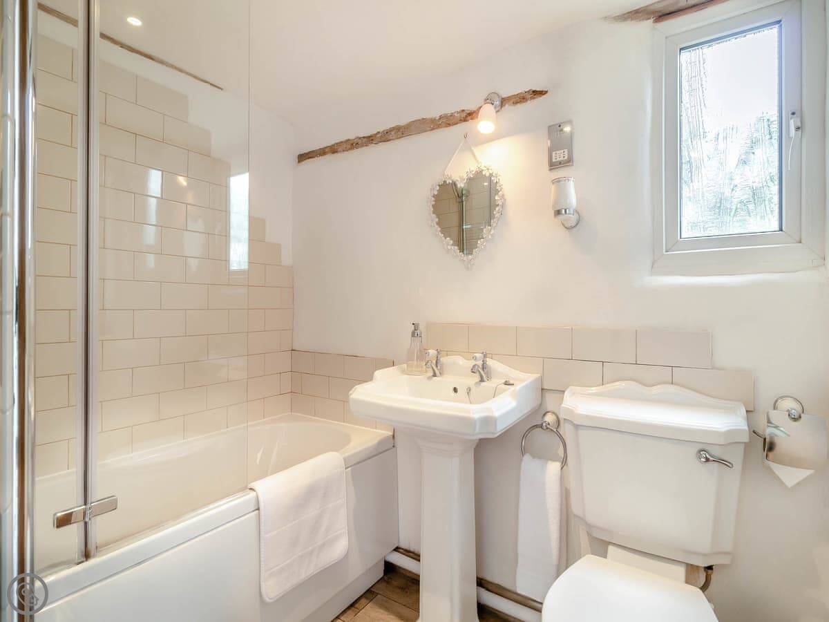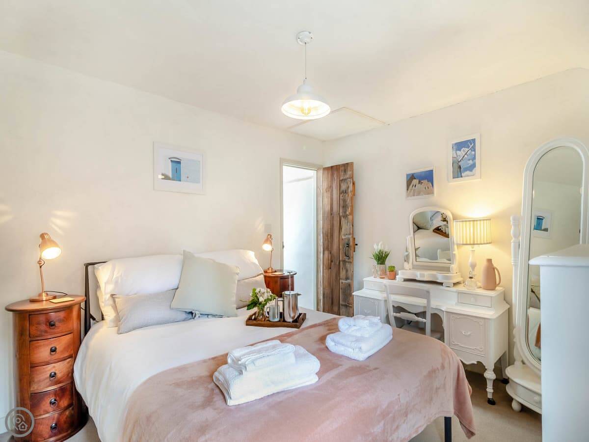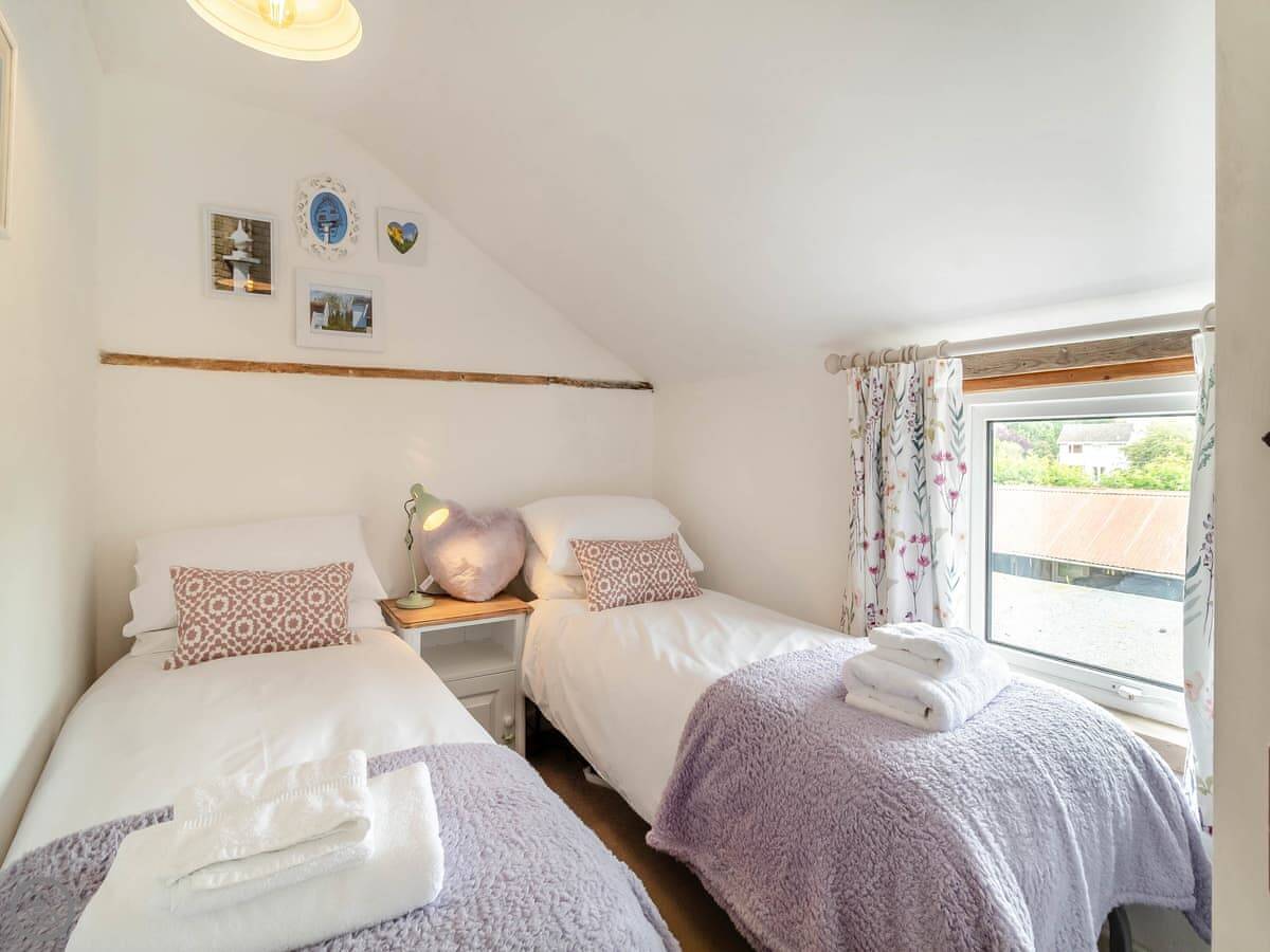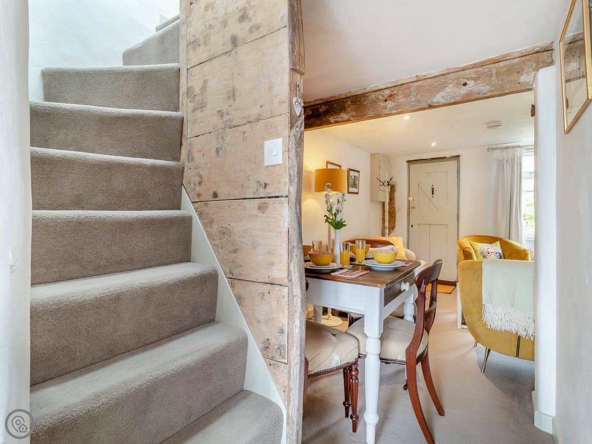 It sleeps four. Two bedrooms, one bathroom. We're happy for dogs to come along, up to three. The stairs are cottage stairs, so they turn a corner and are a bit steeper than modern ones.