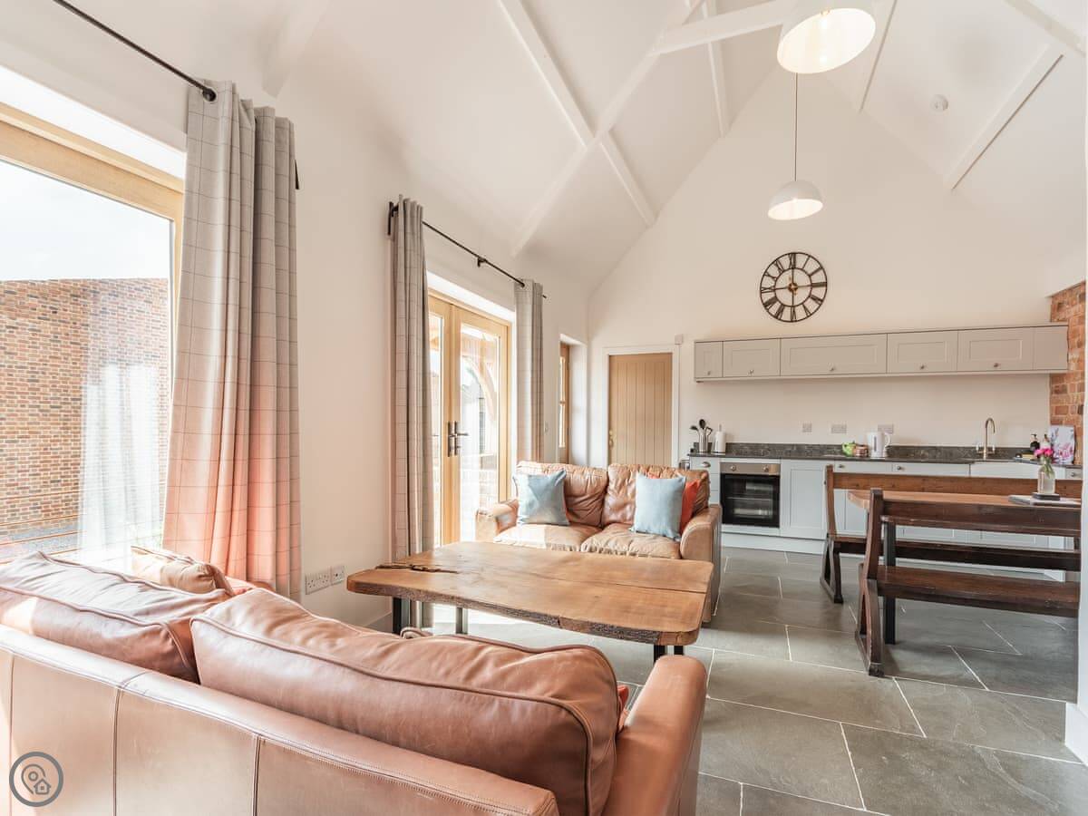The Red Rooster is a barn conversion on our dairy farm in Arlingham. It's on the flat part of the Severn estuary, in a big loop of the river. The views are over fields towards the Cotswold escarpment on one side and the Forest of Dean on the other.