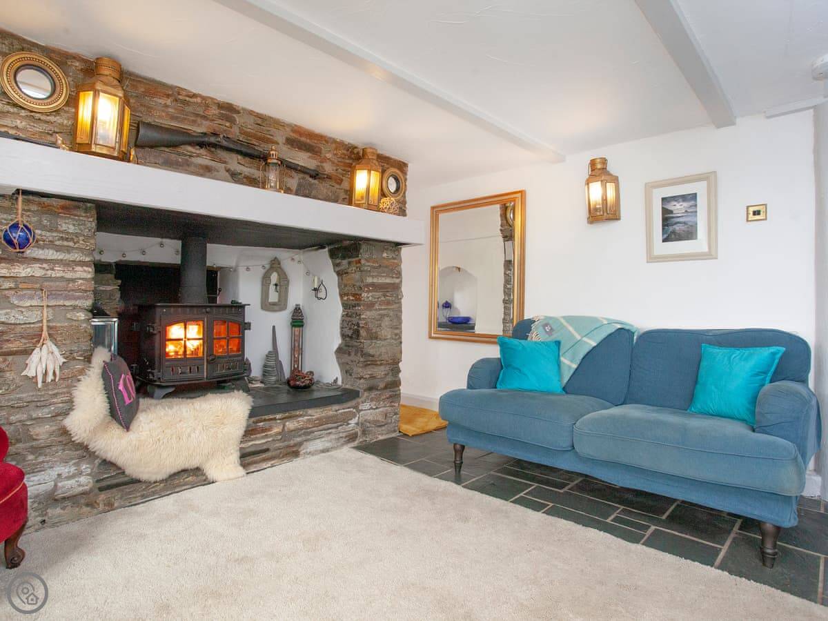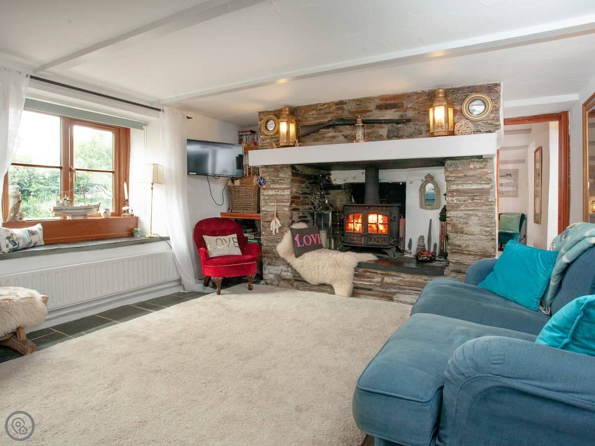 There are two sitting rooms. One's got a wood burner in a big stone fireplace, the other is quieter if someone wants to get away. The kitchen's been updated but it still feels like part of the cottage.