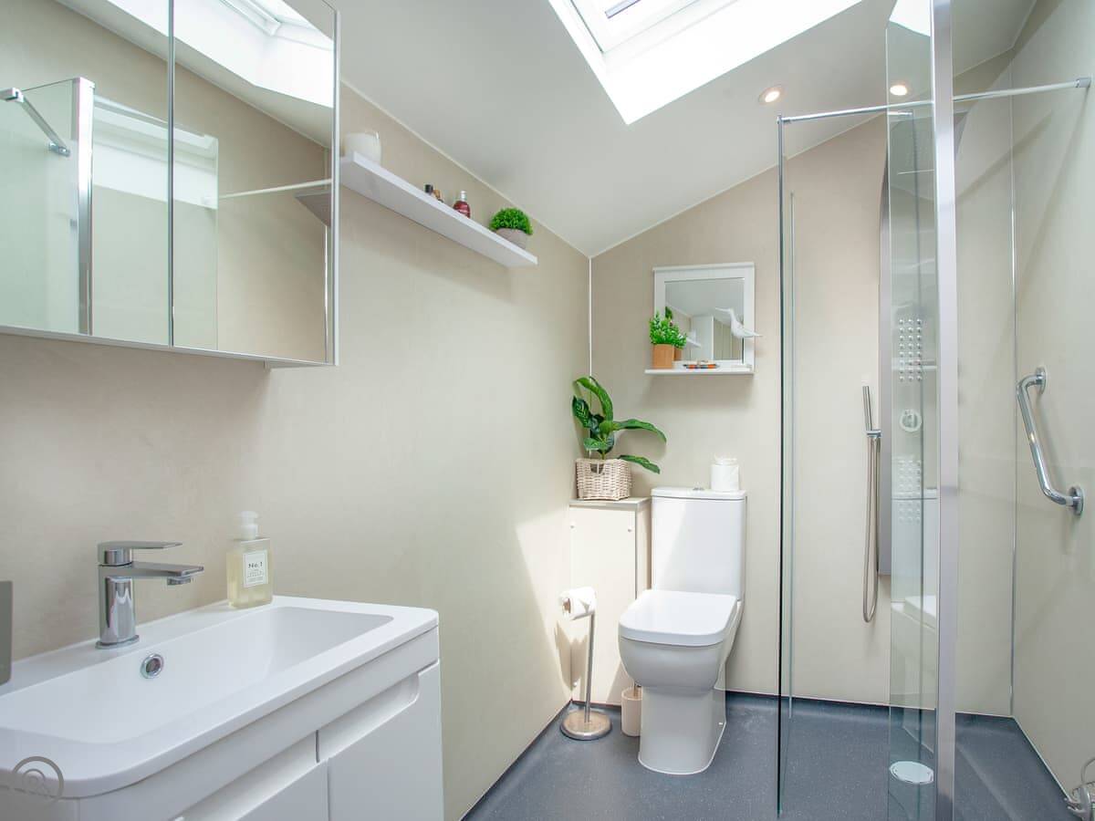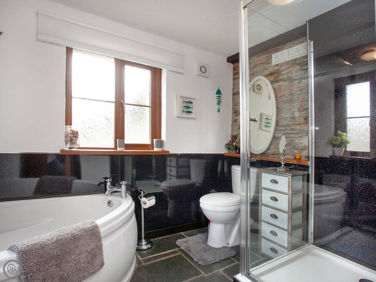 The cottage sleeps six. Three bedrooms, two bathrooms. One of the bathrooms is an ensuite wet room downstairs. It's got a 4 Star rating. You can bring two dogs.
