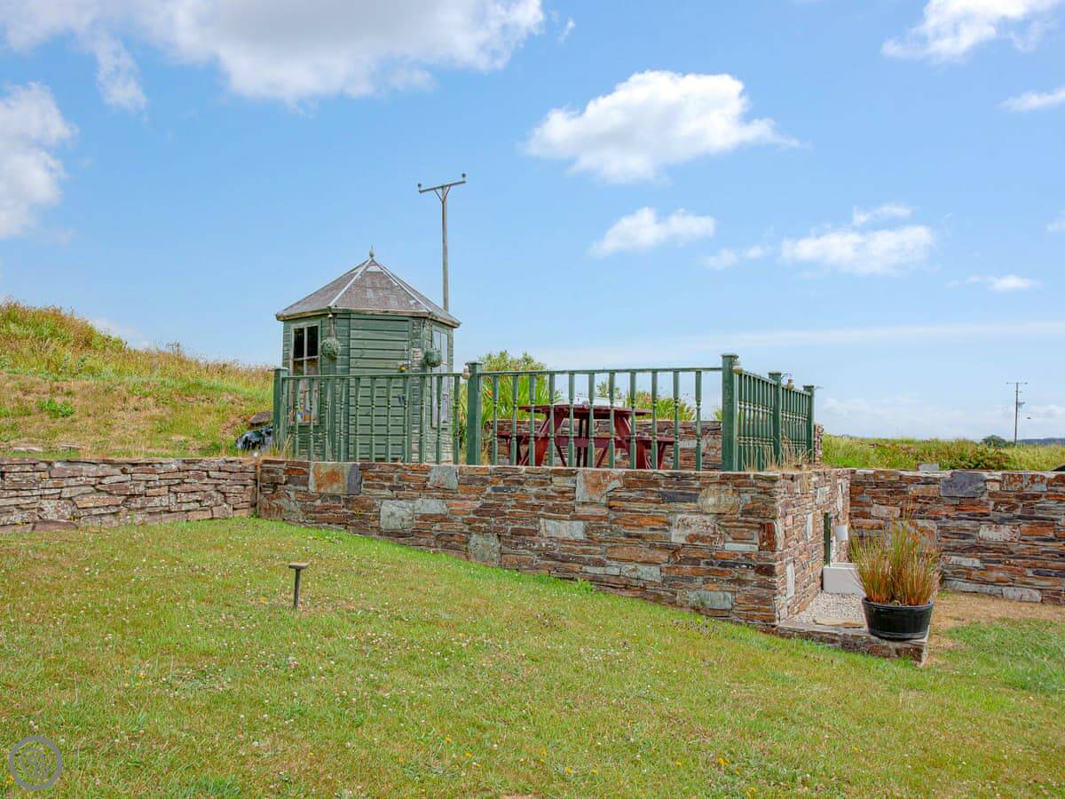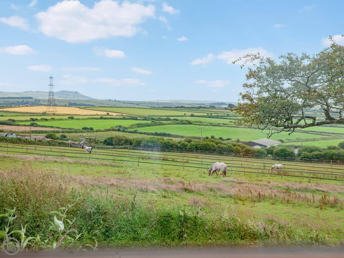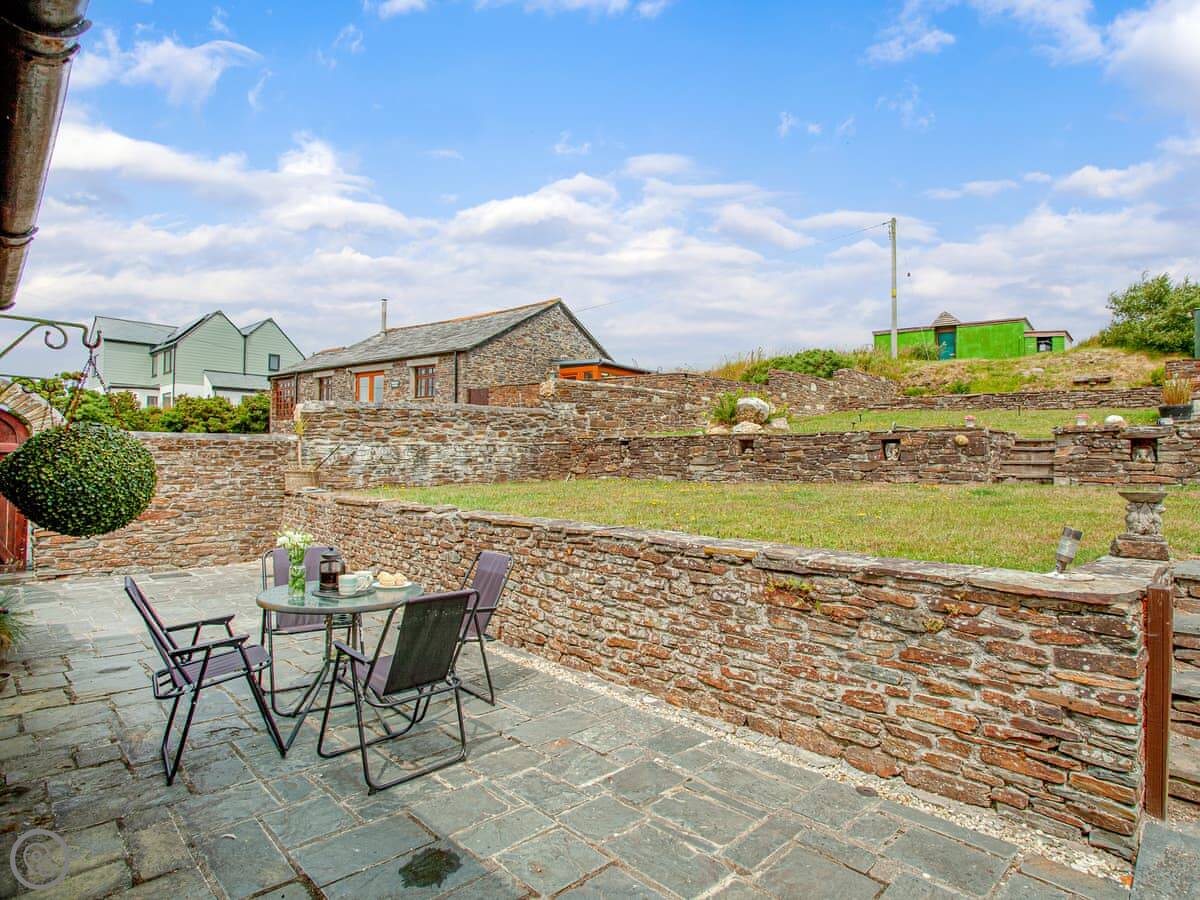 The garden out the back is on a slope, so it's in tiers. There's a few steps up to each level. The views from up there are really good, you can see right out towards Bodmin Moor and Brown Willy. There are three parking spaces.
