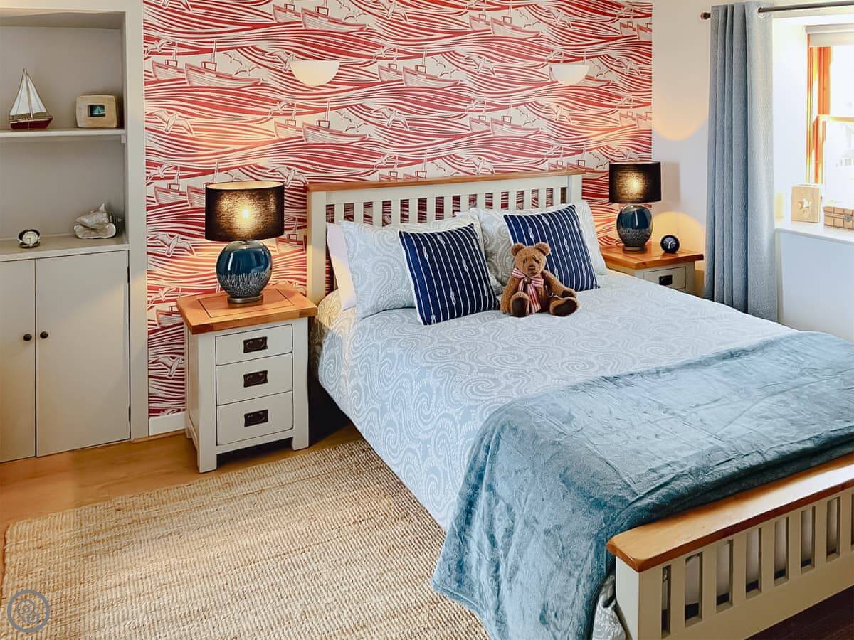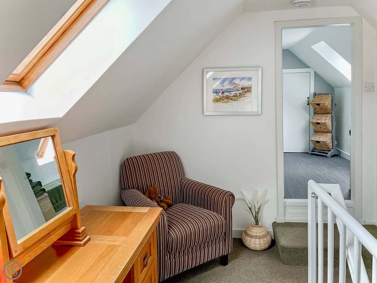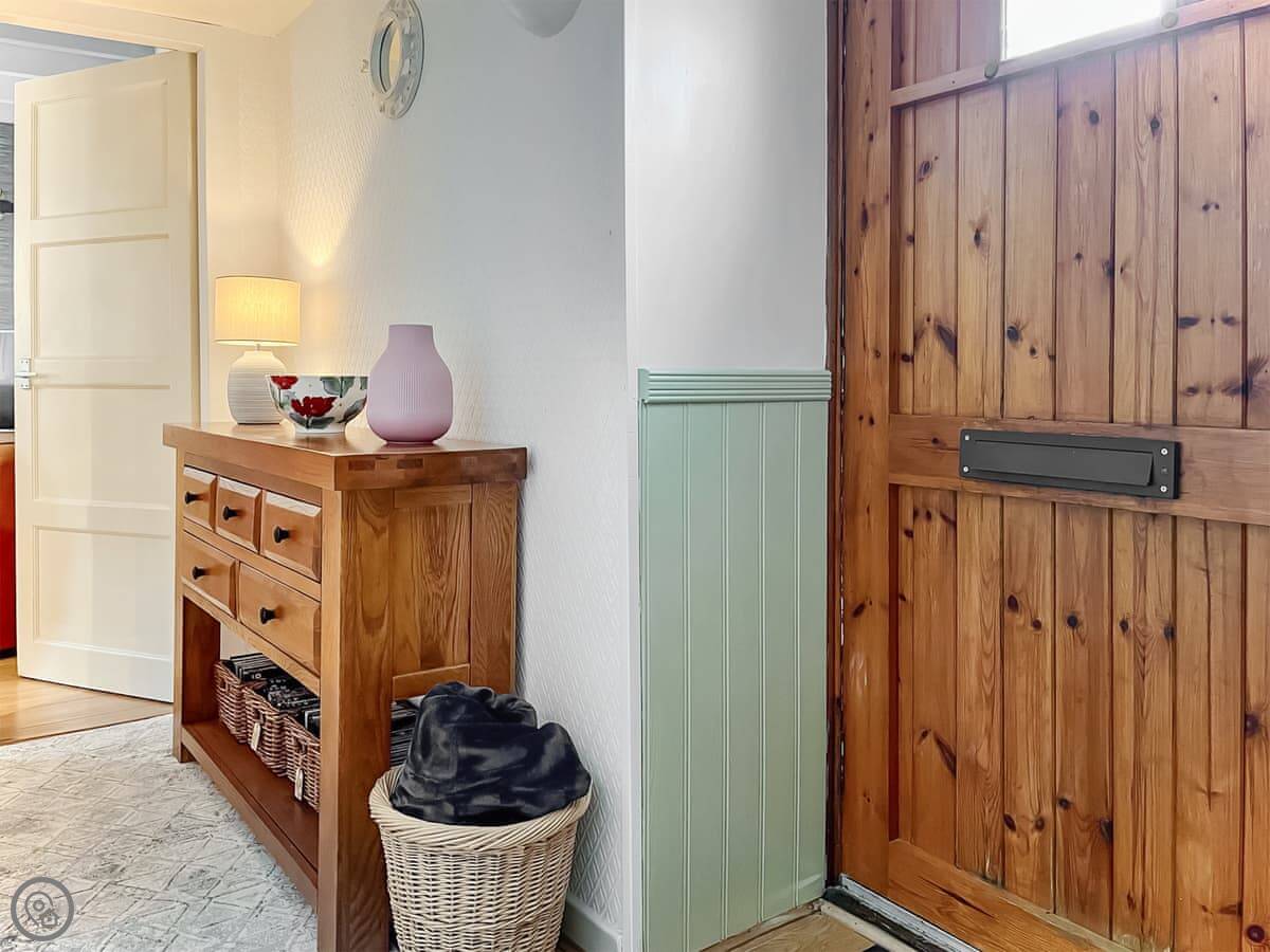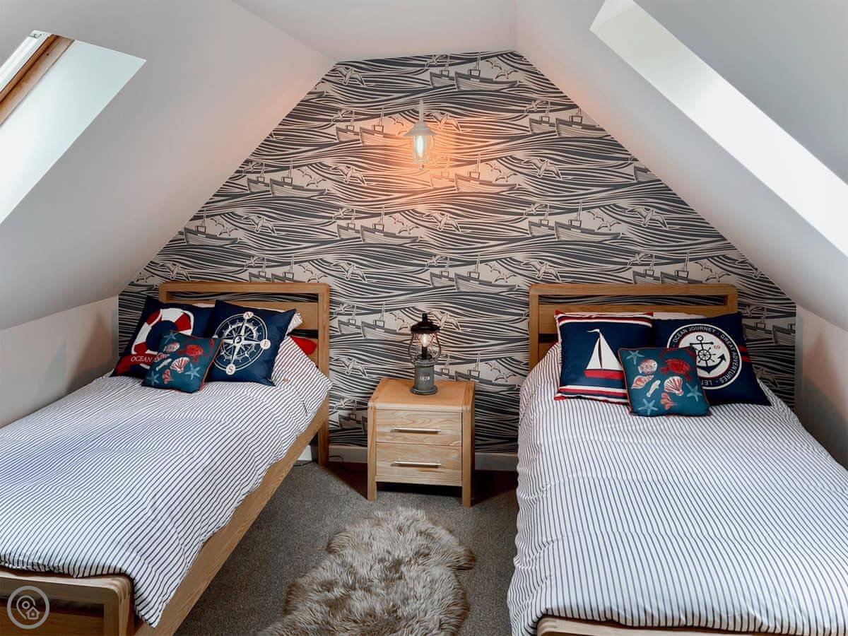 It sleeps four. Two bedrooms, one bathroom. You’ve got a king size on the ground floor and twins up in the loft. It has a 5 Star rating. It’s well kept and everything works.