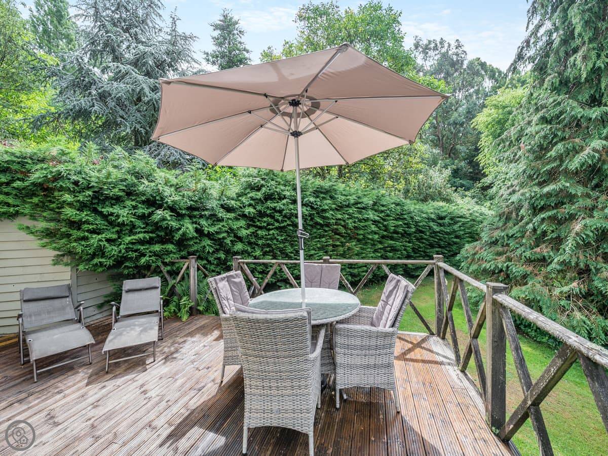 Outside there's a raised decking area with a barbecue. It overlooks a large pond, so you get ducks and coots going by. It's peaceful. The owners live across the courtyard but you wouldn't know it.