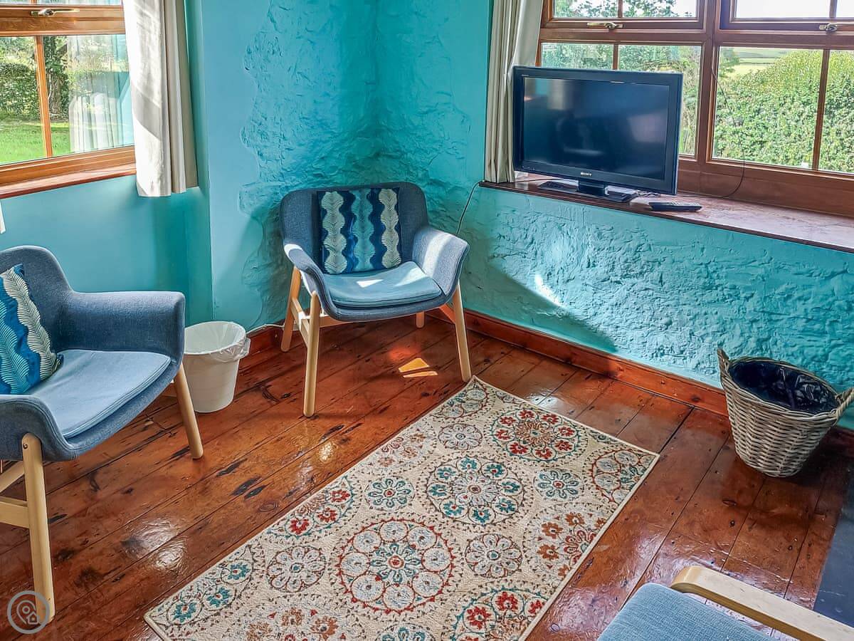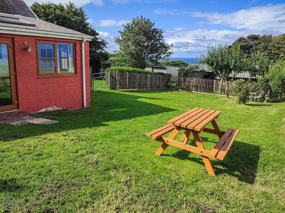 Ceiliog Bach is in Llangennith, on the Gower. It's a colourful little cottage. You get nice views over the garden to the sea.