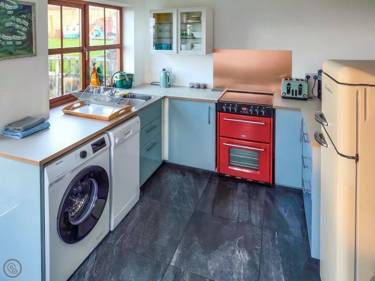 For facilities: It's got a washing machine, dishwasher, WiFi, and TV. Bedding and towels are included. There's a cot and a stairgate if you need them. You can bring two dogs. There's parking on site.