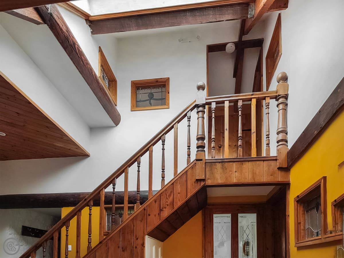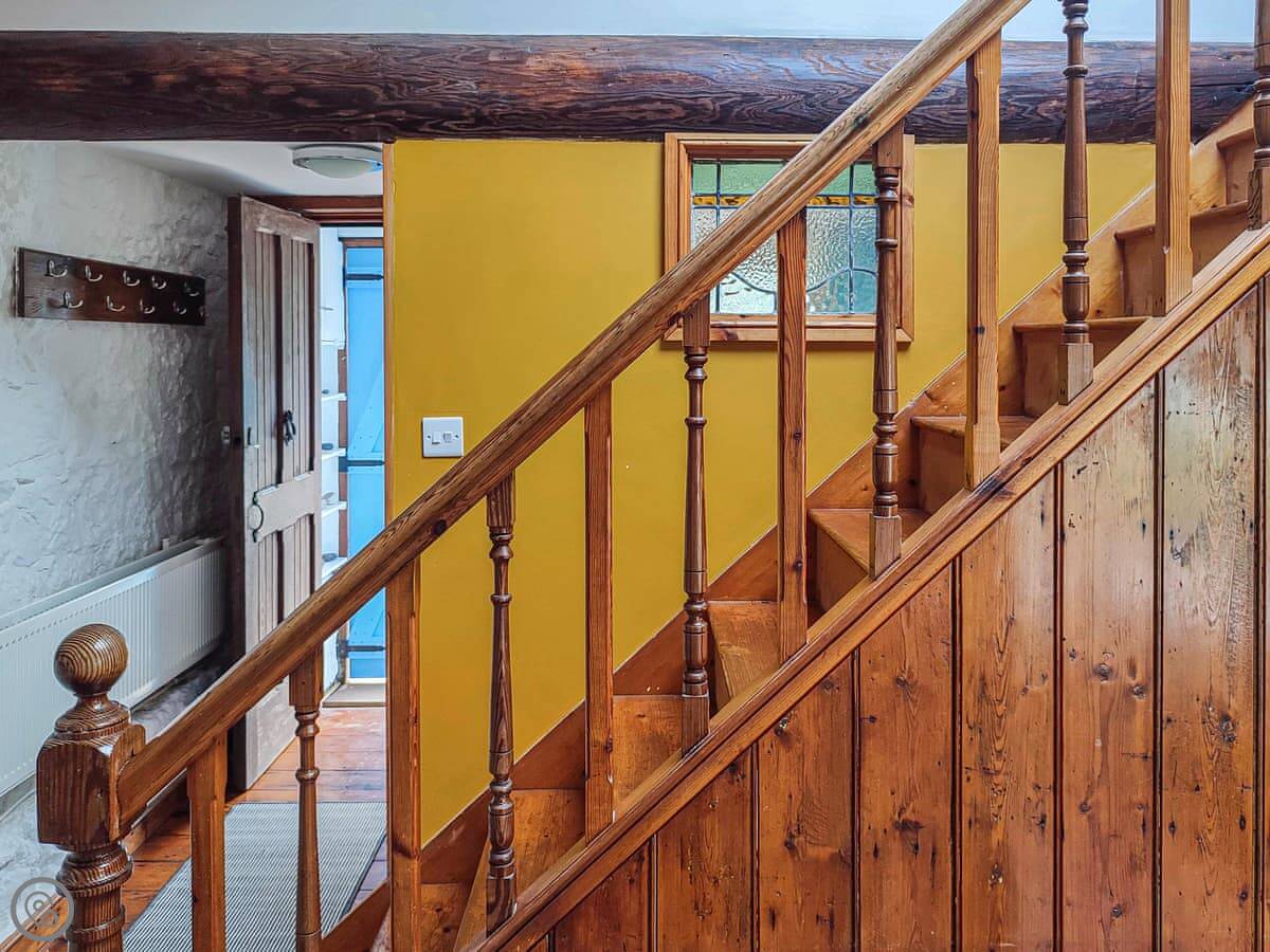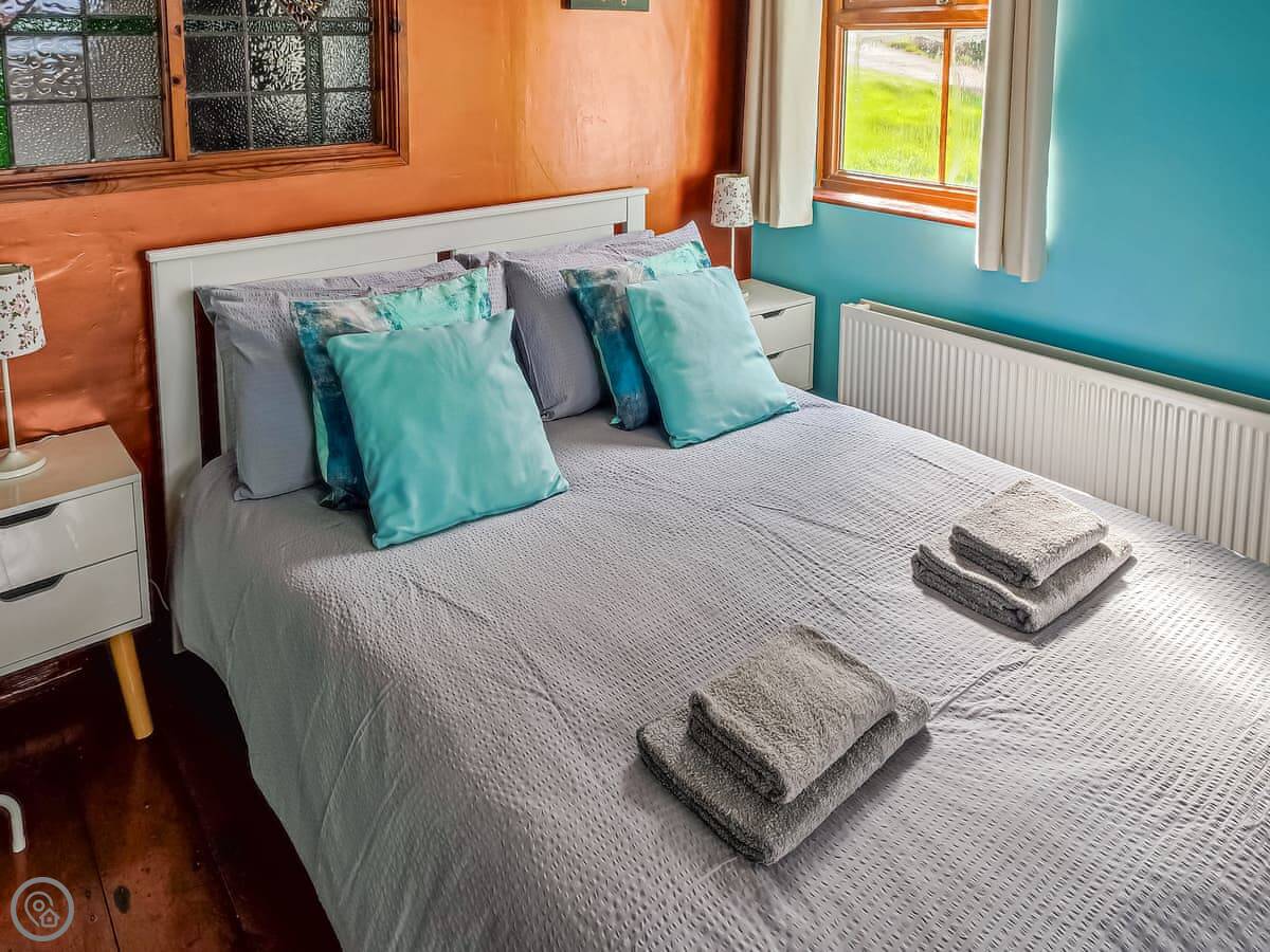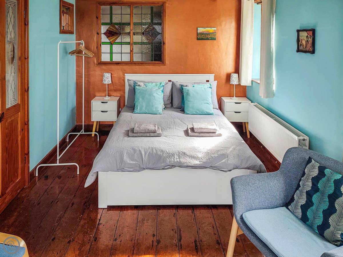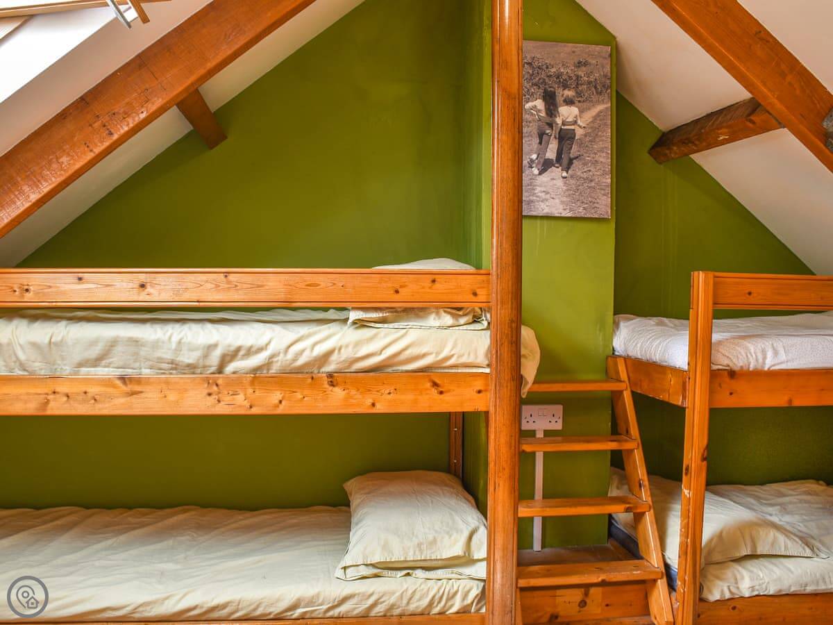 It sleeps four. There are three bedrooms, but one of them is really for children. One double bedroom and a bathroom are on the ground floor. The stairs go up to two more bedrooms. One has a custom double bed built into the eaves. You have to climb into it, but it's cosy once you're in. The other room has three small single beds, also built in. They're only suitable for children.
