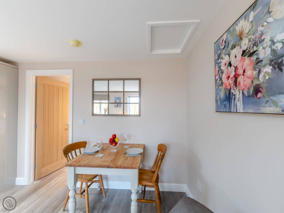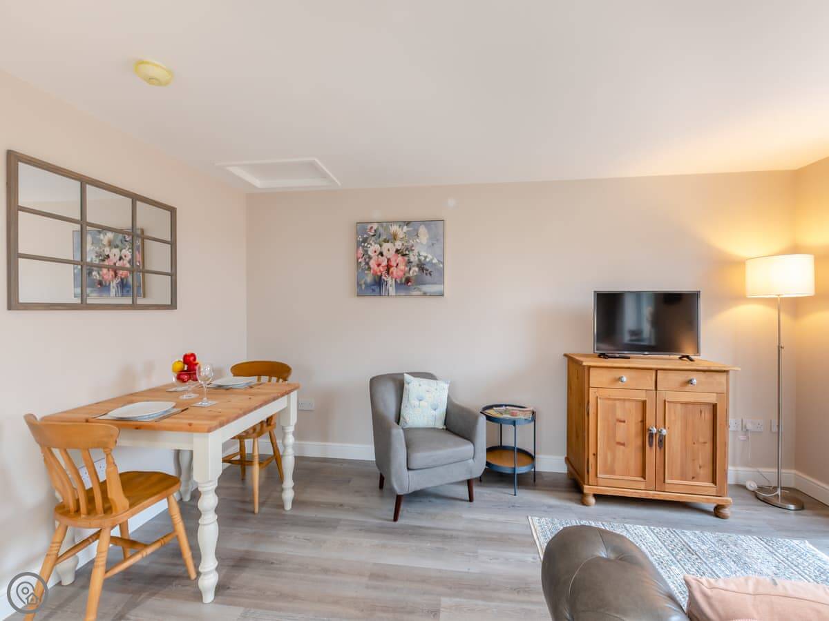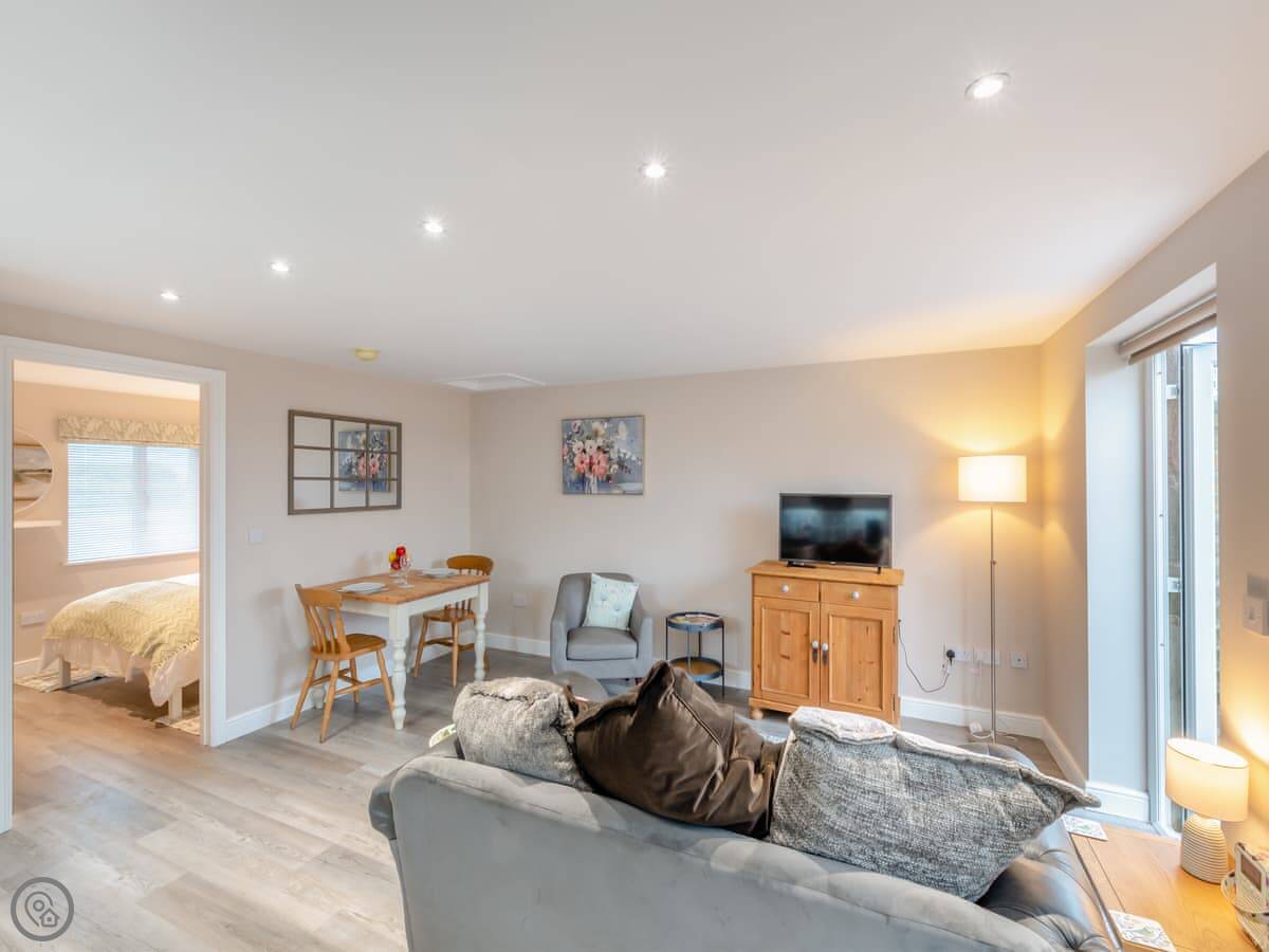 It's open plan inside. French doors open onto a private, enclosed patio with a table and chairs. You can sit out there in the morning. The garden is just for you.
