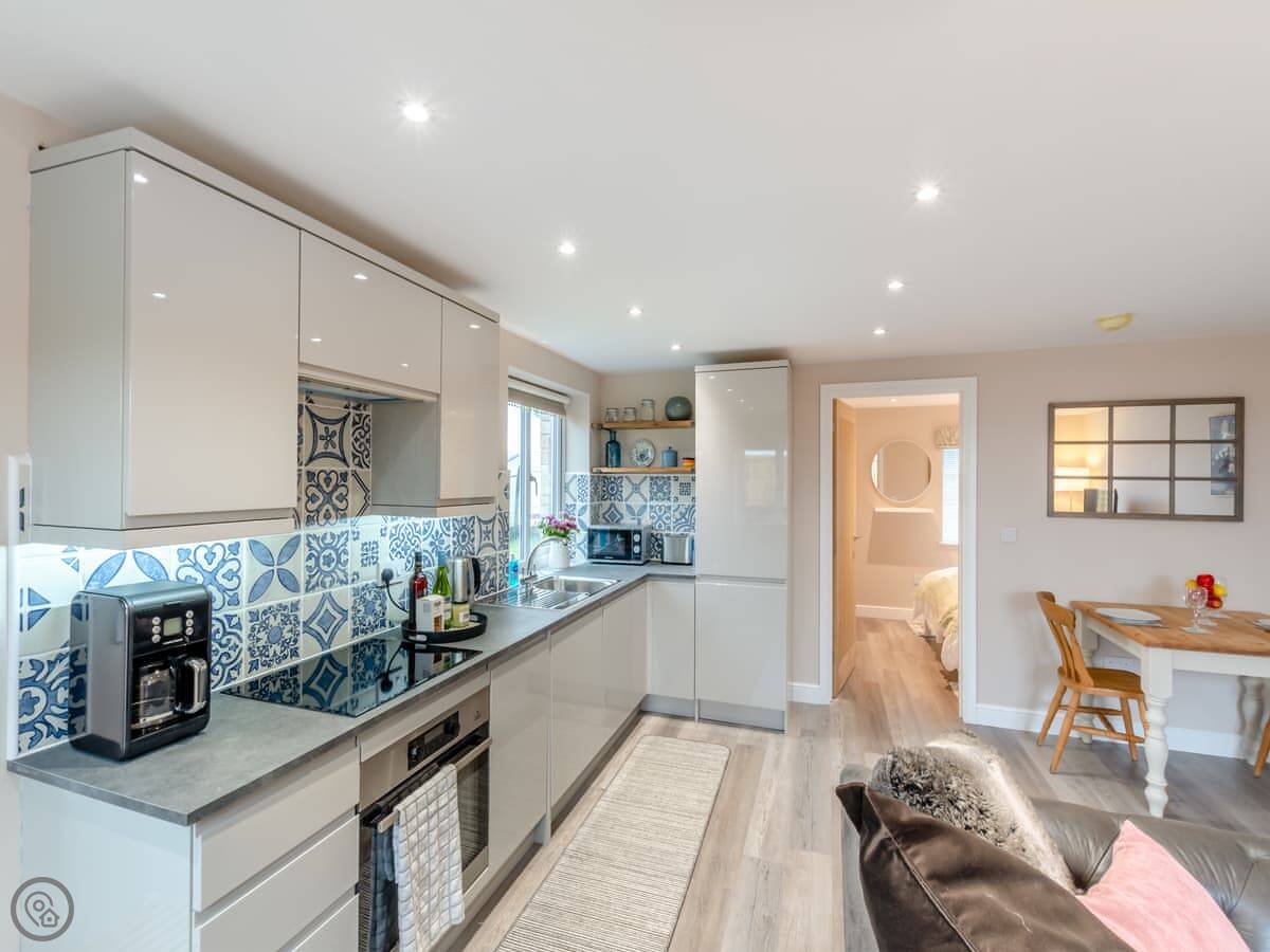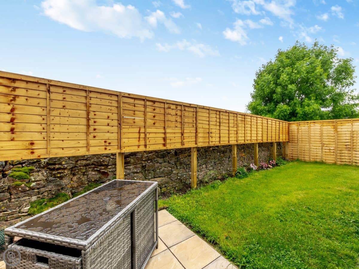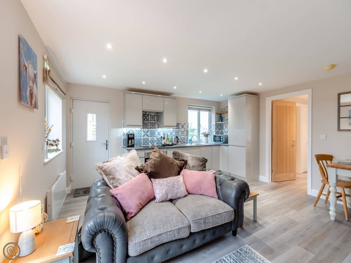 It's open plan inside. French doors open onto a private, enclosed patio with a table and chairs. You can sit out there in the morning. The garden is just for you.