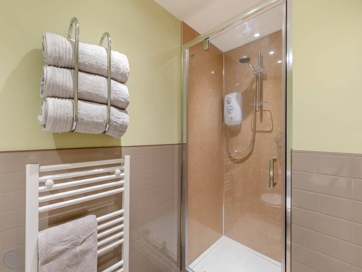 Oswald's Rest is a cottage on our farm, about halfway between Bamburgh and Seahouses. It's a detached, single-storey place, sleeps two. One bedroom with a kingsize bed, one bathroom with a shower. It's got a 4 Star rating. It's clean and comfortable, with good bedding.