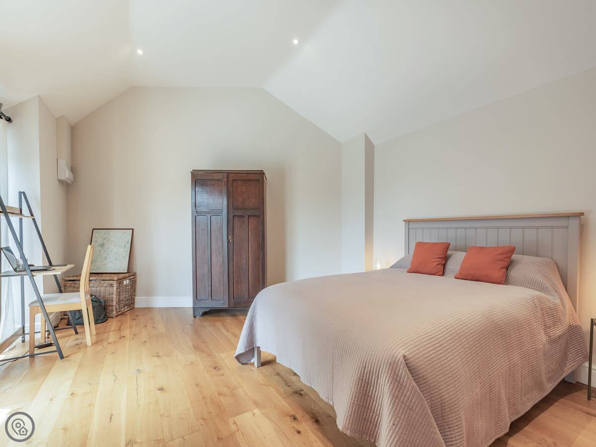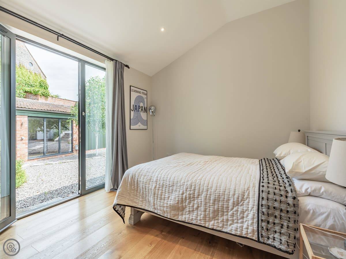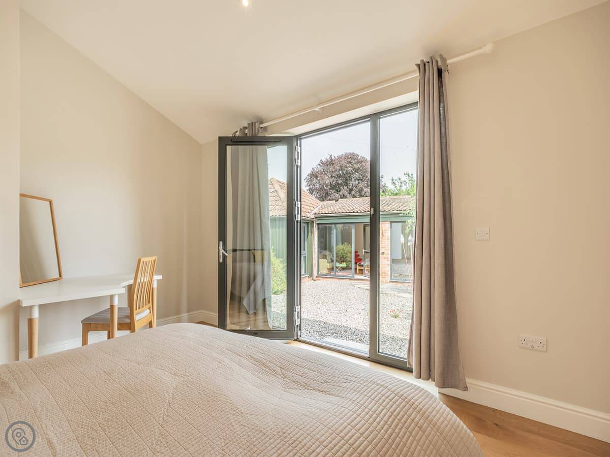 It sleeps six. There are four bedrooms and three bathrooms, which is handy. Two of the bedrooms have French doors out to the courtyard. You can bring one dog.
