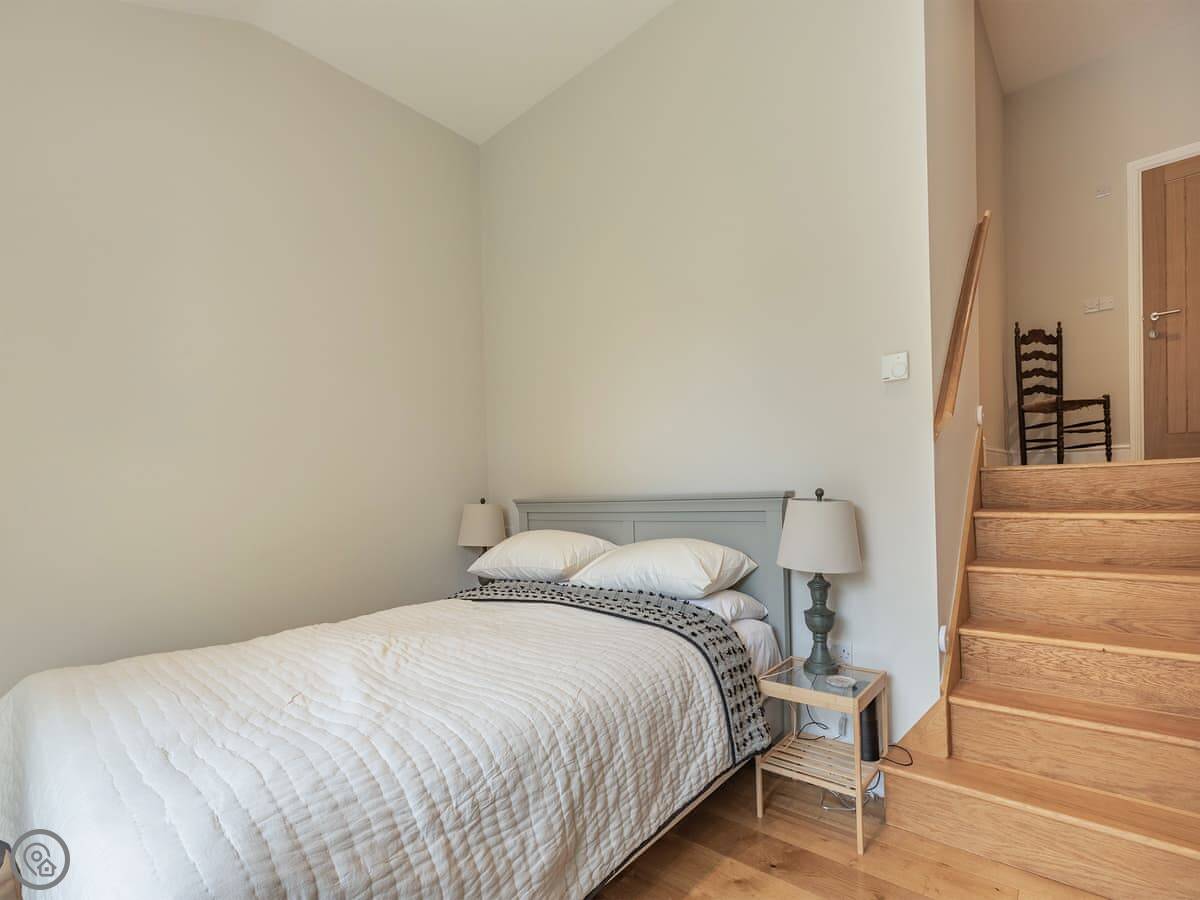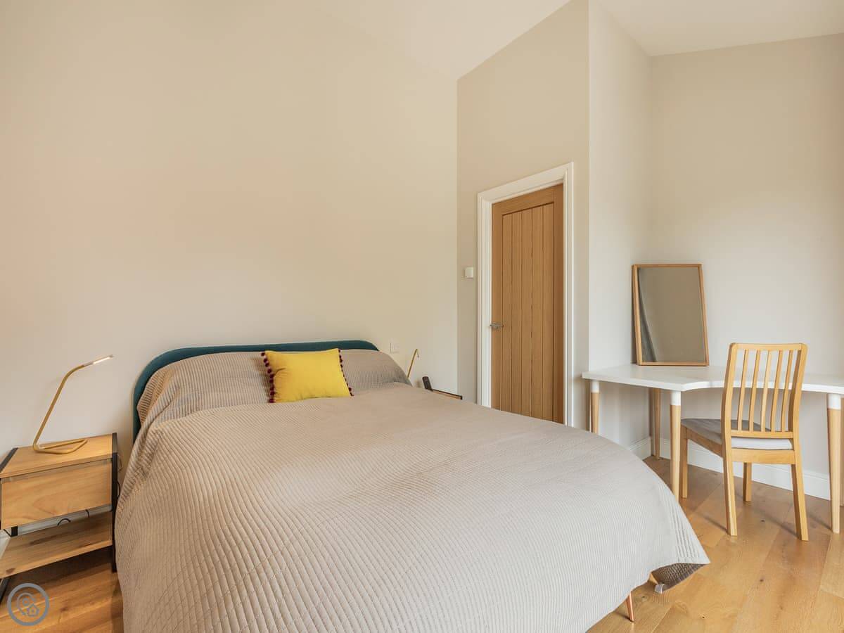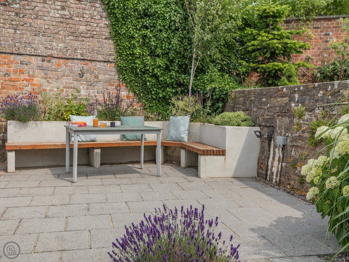 It sleeps six. There are four bedrooms and three bathrooms, which is handy. Two of the bedrooms have French doors out to the courtyard. You can bring one dog.