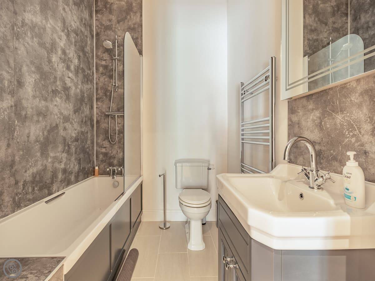 Facilities are all included: bedding, towels, WiFi, parking. There's a washing machine, dishwasher, cot, and highchair.