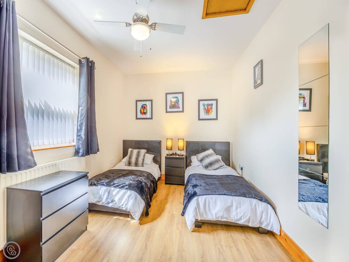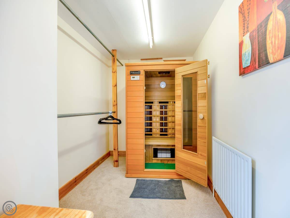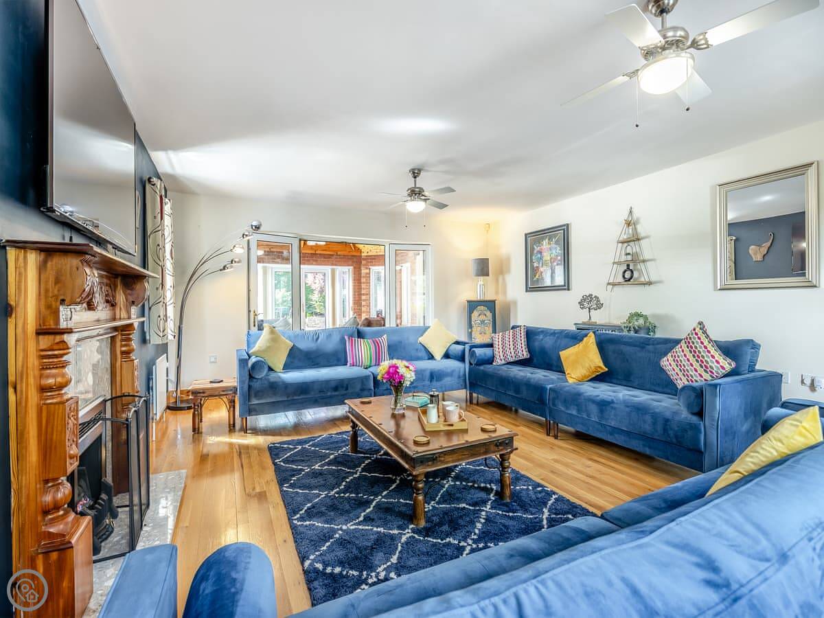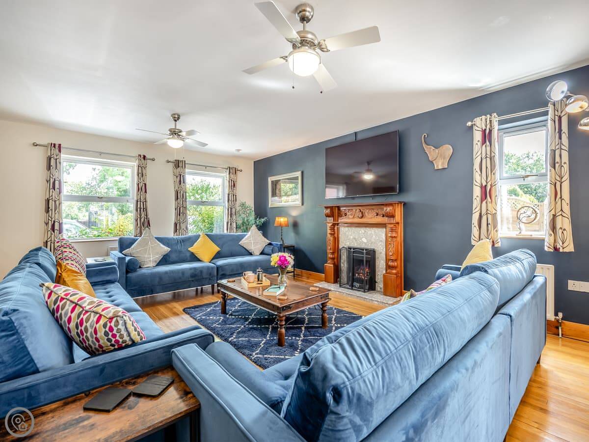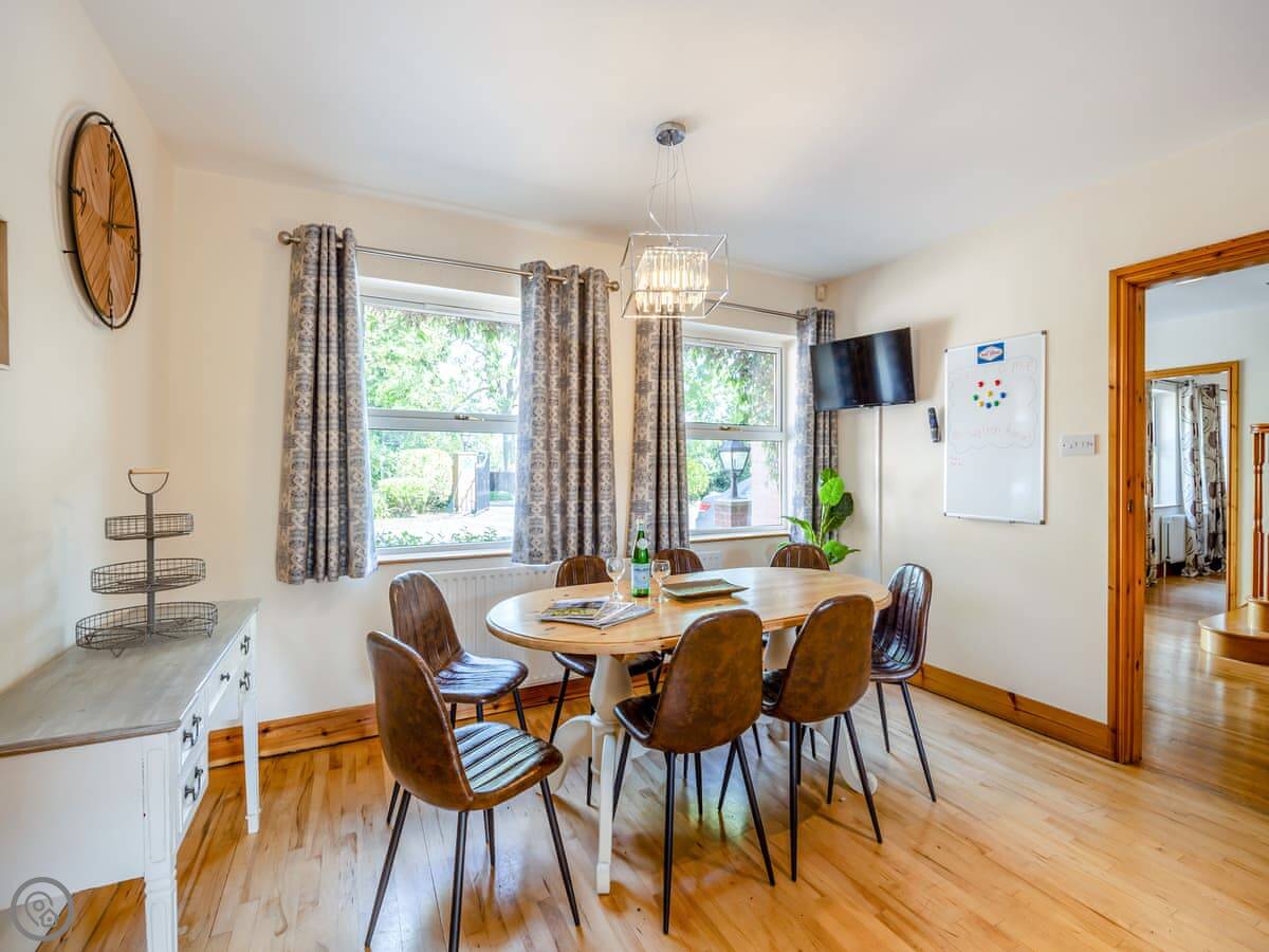 The place has a 5 Star rating. That means it's well kitted out and maintained. You've got two living spaces: a main sitting room with a TV and a games room. The kitchen is a good size for a group, with a dishwasher. There's a utility room off it with a washing machine and tumble dryer. Outside, there's an enclosed garden with a patio area, a BBQ, and a hot tub.