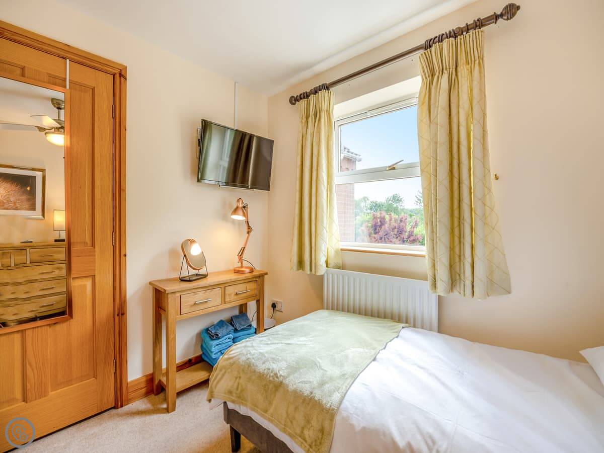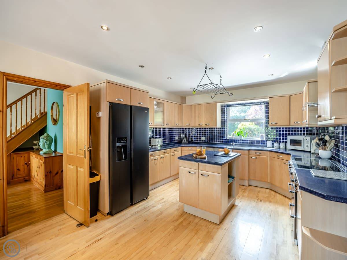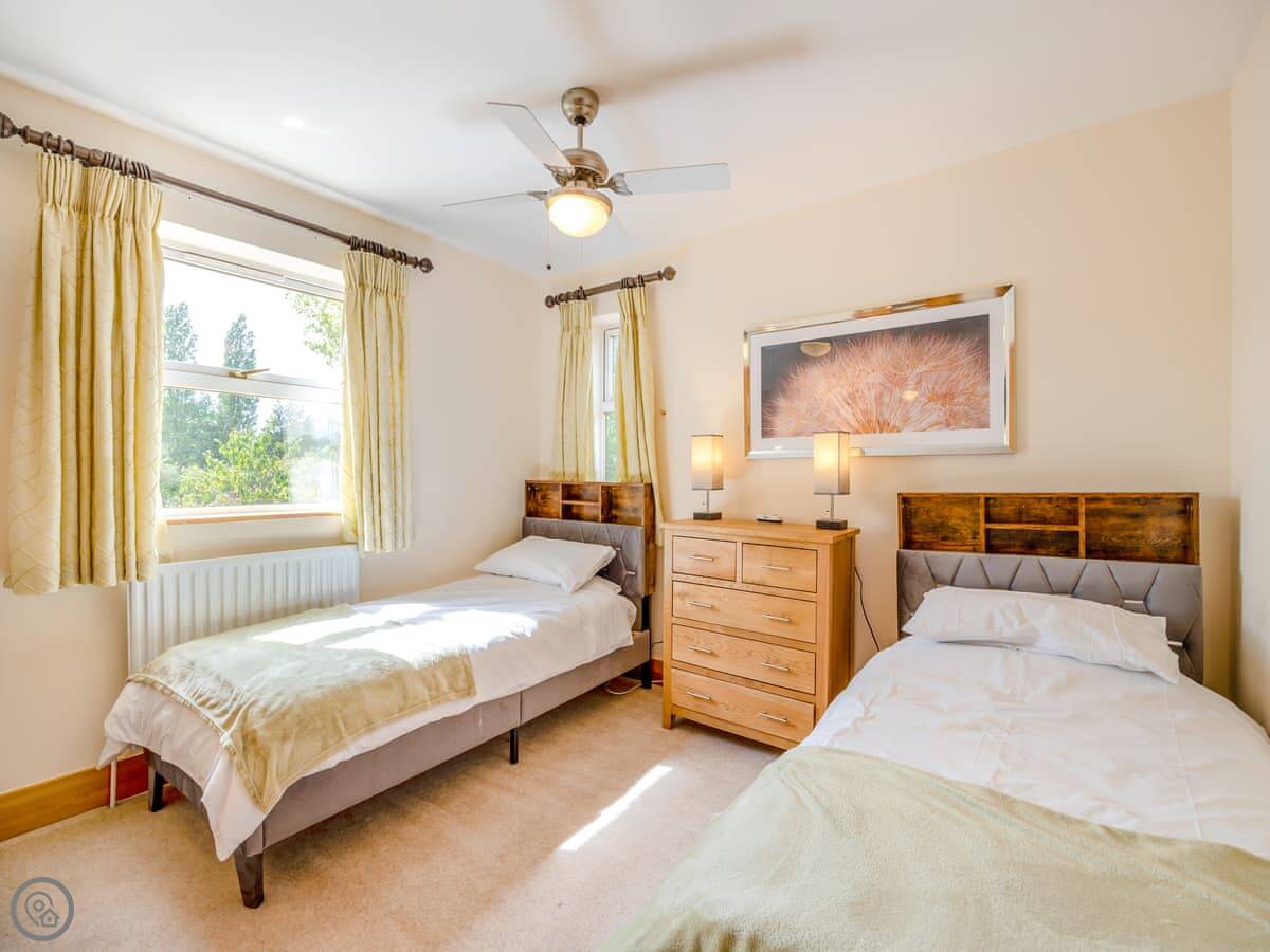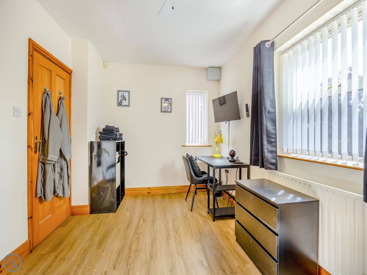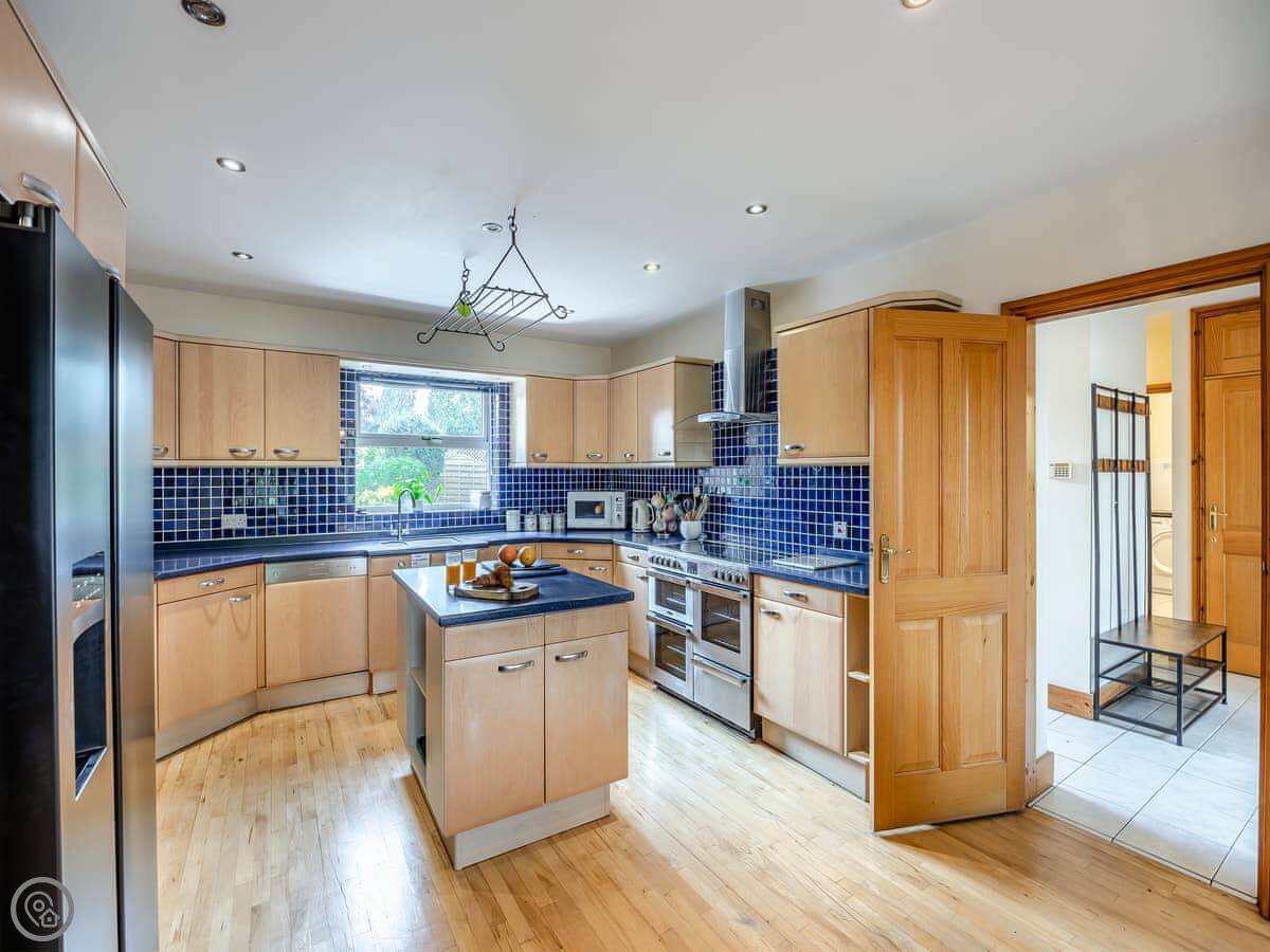 The place has a 5 Star rating. That means it's well kitted out and maintained. You've got two living spaces: a main sitting room with a TV and a games room. The kitchen is a good size for a group, with a dishwasher. There's a utility room off it with a washing machine and tumble dryer. Outside, there's an enclosed garden with a patio area, a BBQ, and a hot tub.
