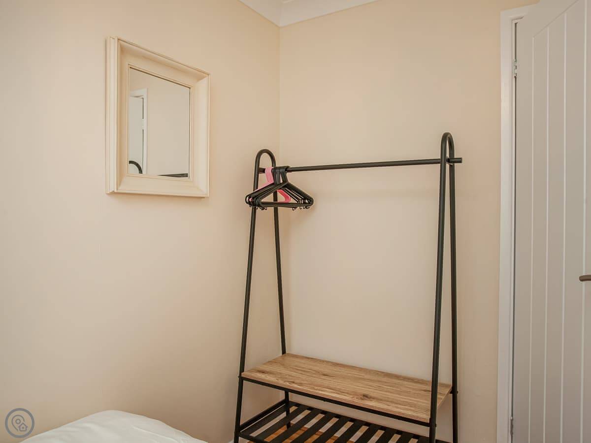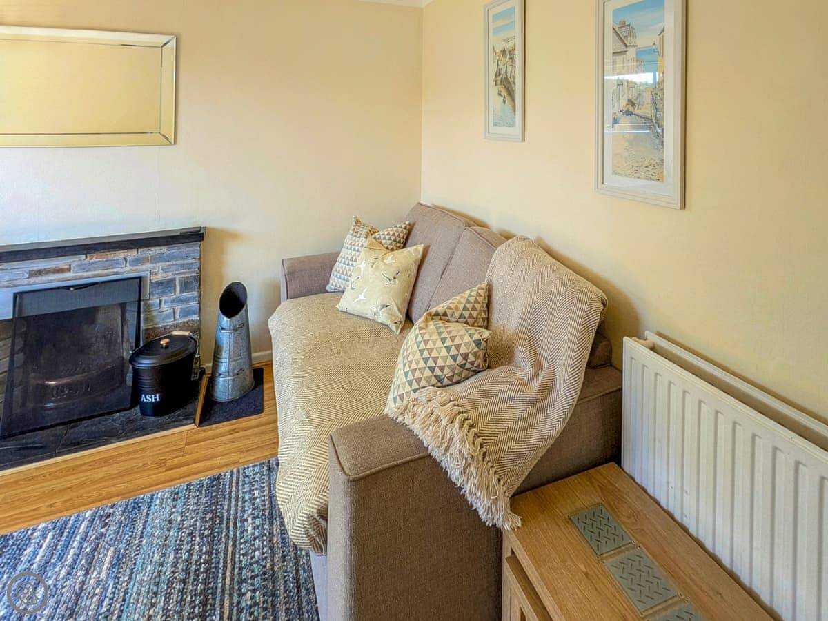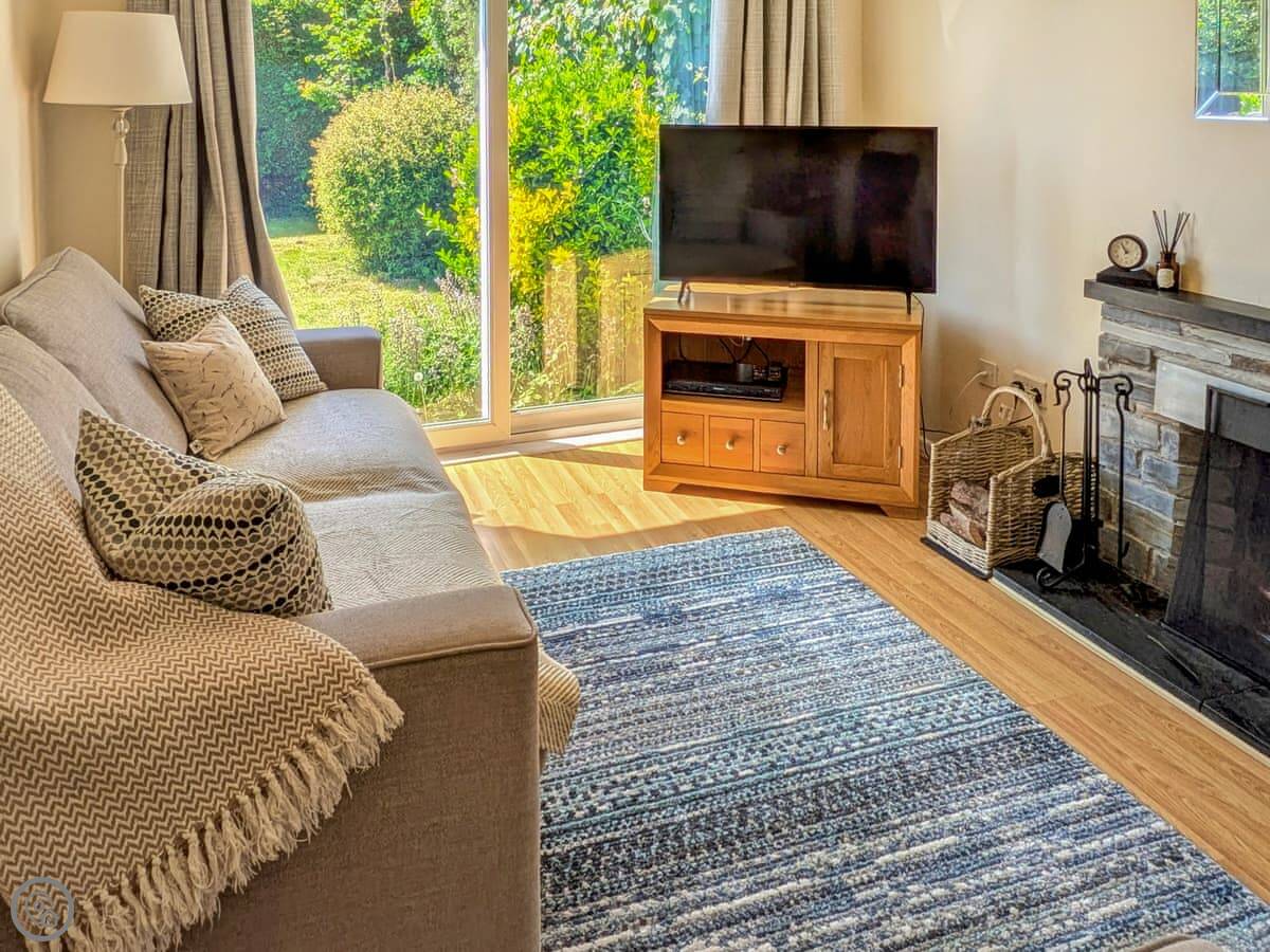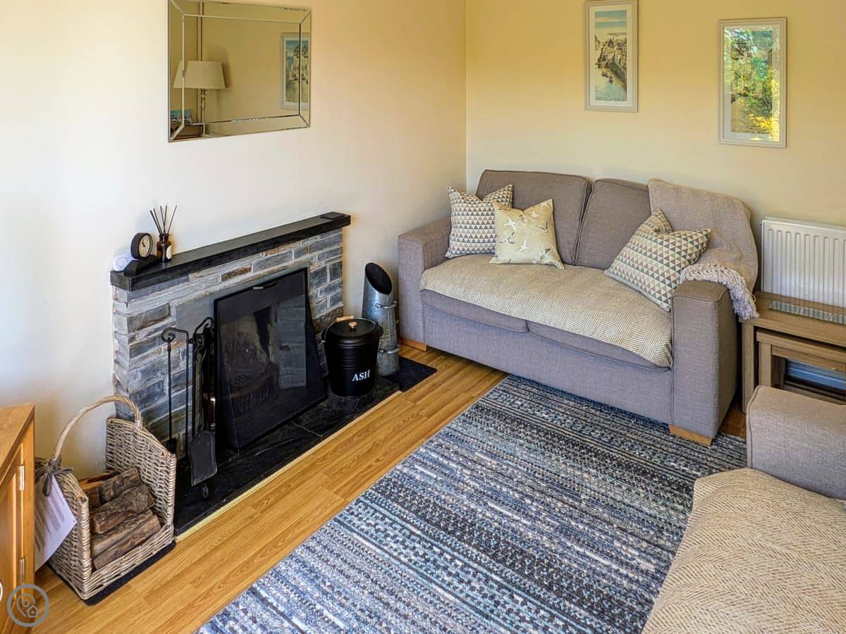 The main bedroom has a king size bed. The second room has a bunk setup with a double bed on the bottom and a single on top. The third room is a single. The living room has patio doors out to the front garden, which is enclosed. There's a woodburning stove. The kitchen has a dishwasher and washing machine. Bedding and towels are included. There's parking on the drive, and an electric vehicle charger.