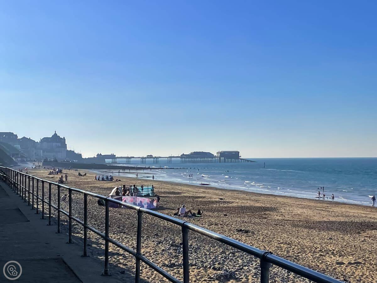 You're about a ten minute walk from the town centre and the beach. The way to the beach is up some steps from the clifftop. The beach is sandy. Cromer has the usual seaside stuff: a pier, arcades, crazy golf, places to eat. The end-of-pier show in the summer is the last one like it in the country.