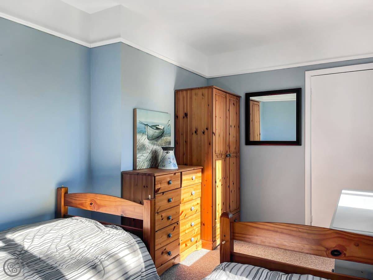 It sleeps six, with three bedrooms and one bathroom upstairs. It’s got a 3 Star rating, so it's comfortable and clean. The garden is enclosed, which is handy if you have kids or a dog.