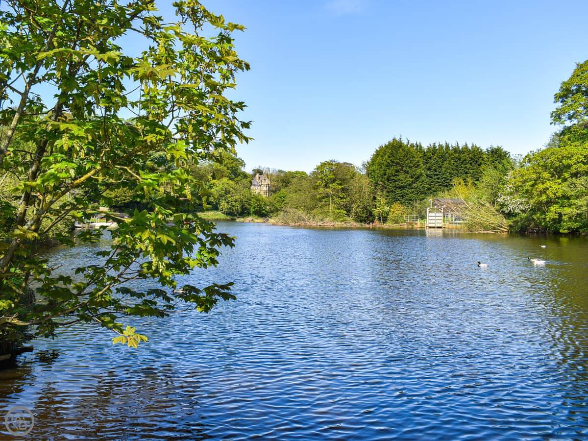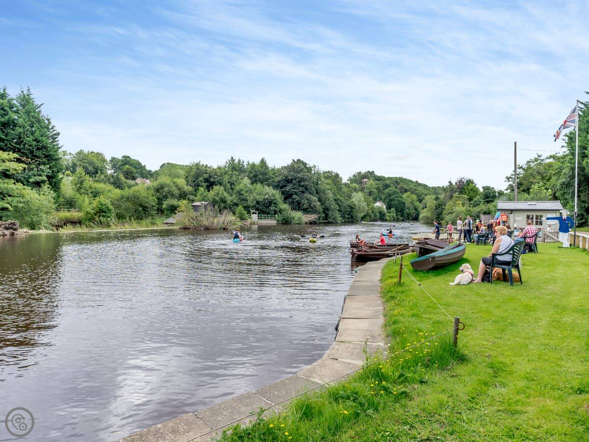 Ruswarp has a village green. There's a pub over there that does food. You can hire rowing boats or kayaks on the river. Whitby is the next stop on the train, or about five minutes in the car.