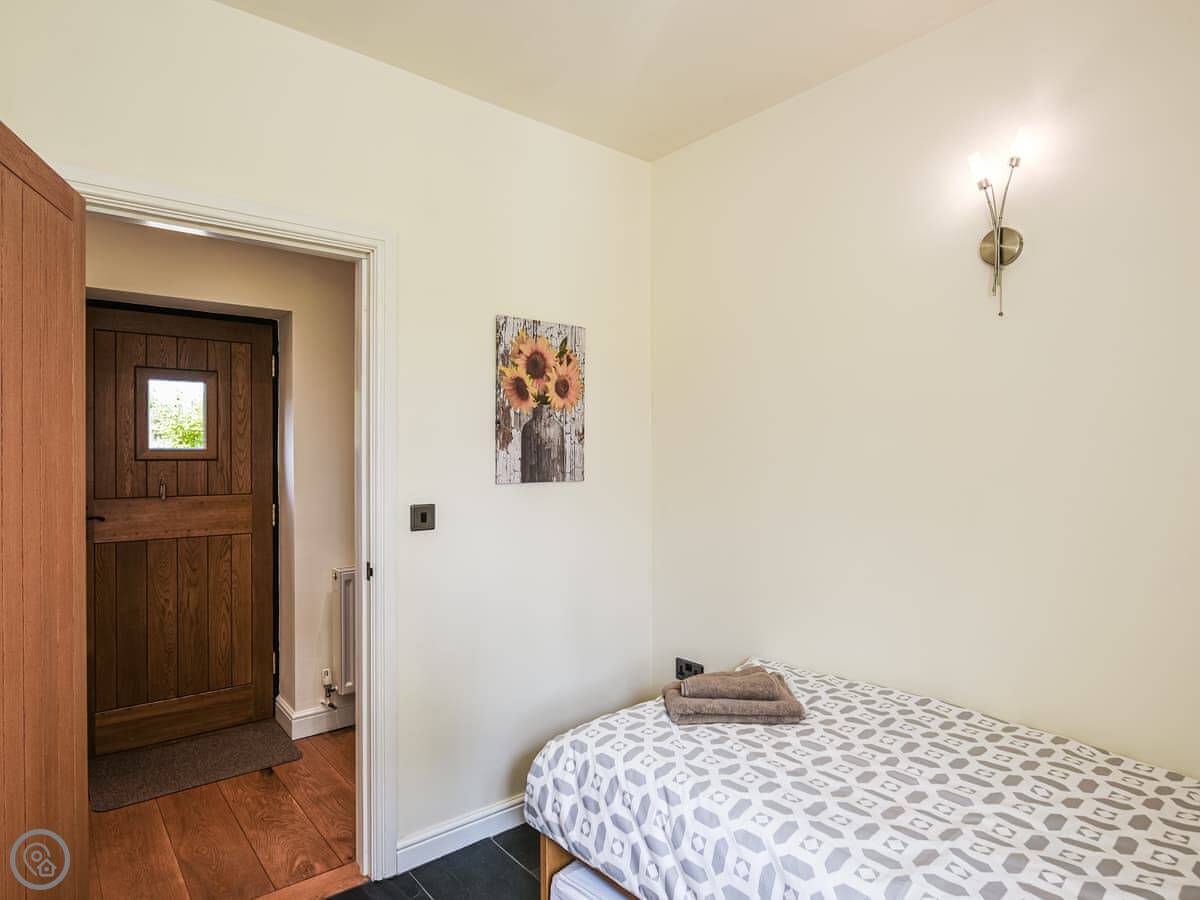 It sleeps four. Two bedrooms upstairs, one bathroom. It's a 4 Star place, so it's comfortable and has everything you need. The bathroom is on the ground floor, which is handy.