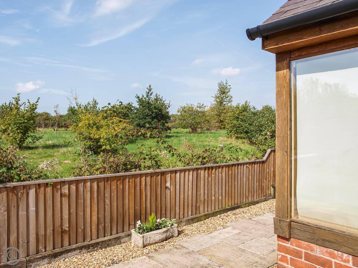 The garden is private. It looks out over fields and you can see the Long Mynd from there. It's quiet. You get parking right next to the cottage.