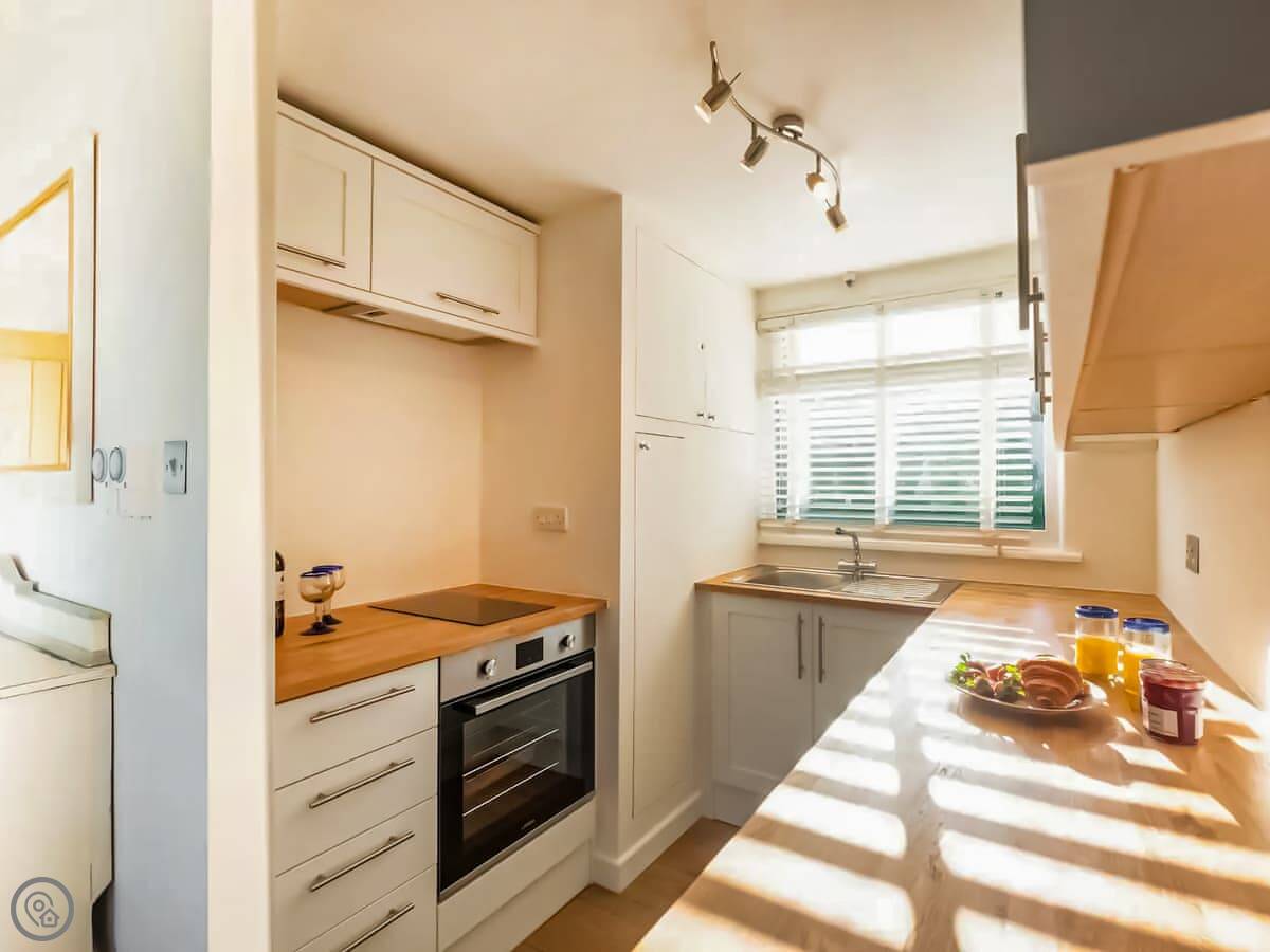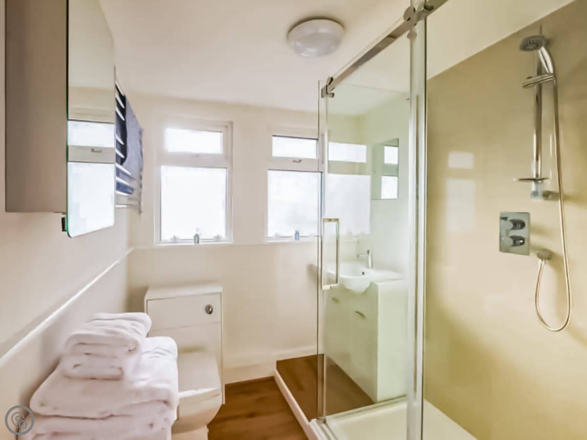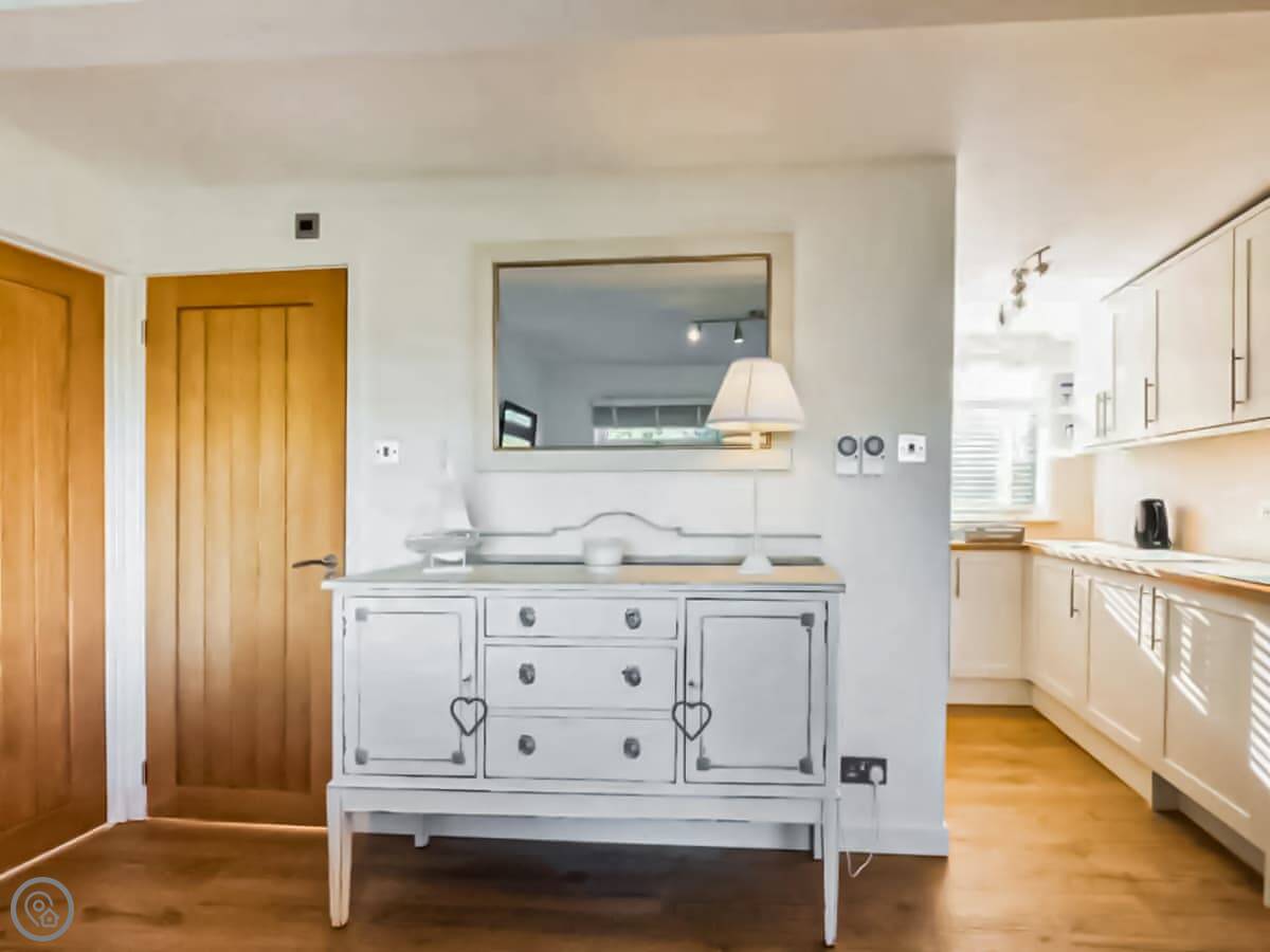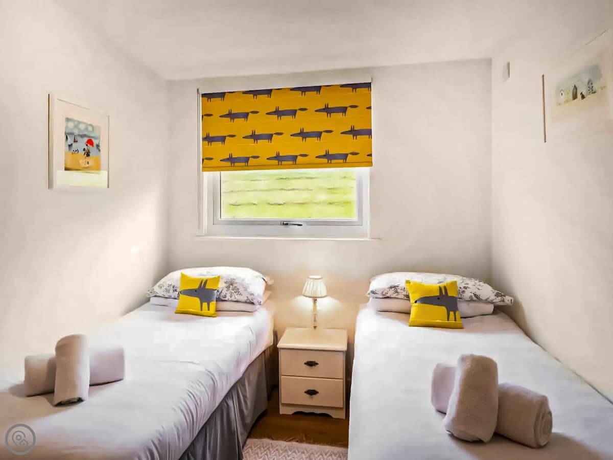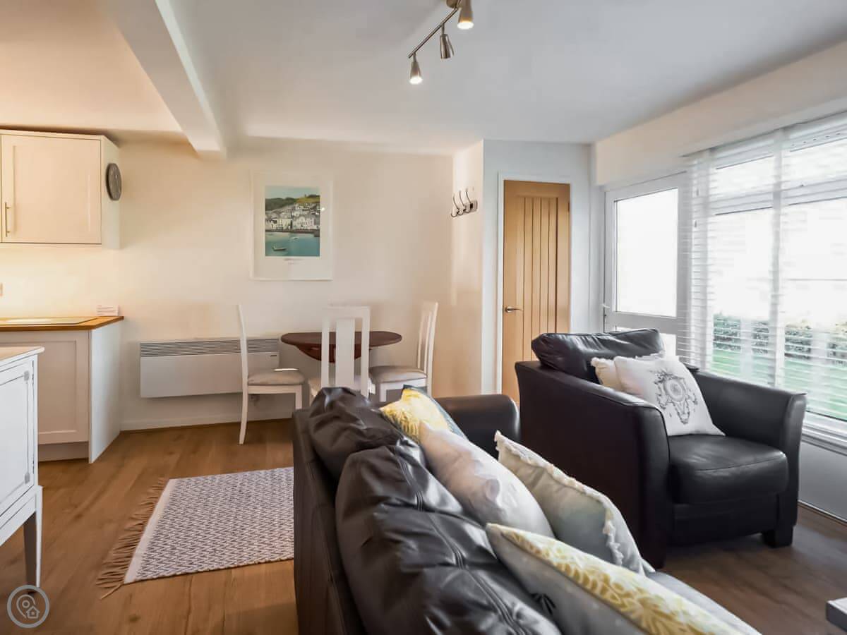 It's been done up recently. Sleeps four in two bedrooms, with one shower room. It's clean and modern inside. The living area is open plan. There's an electric fire for background warmth.