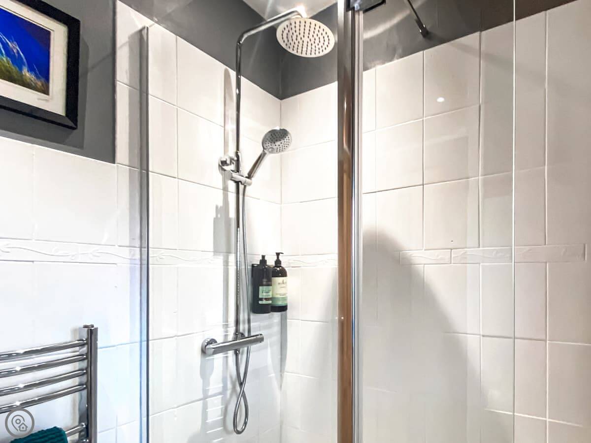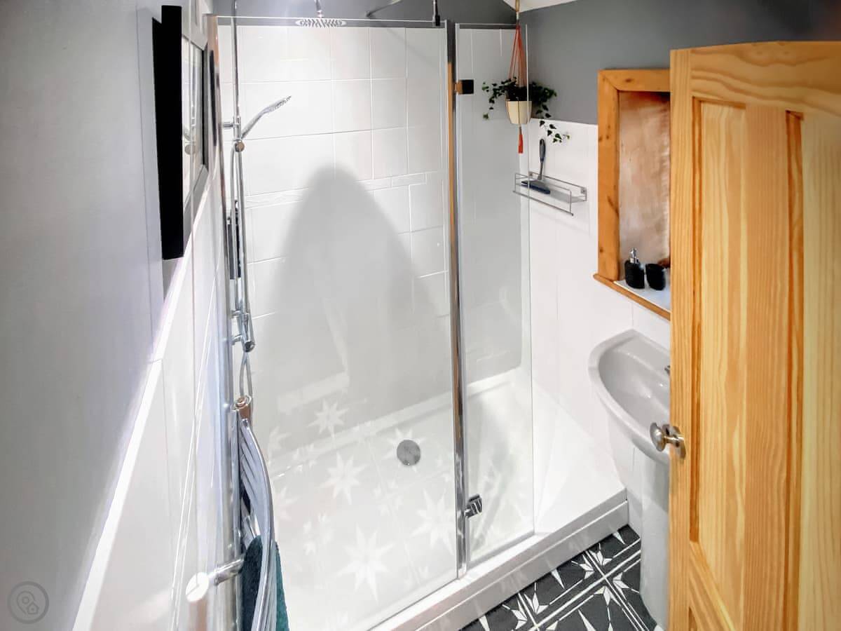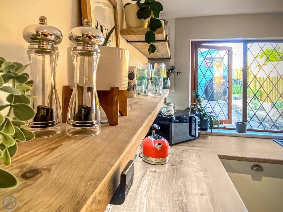 It's got a 4 Star rating. It's been done up nicely inside. There's a wood burner in the living room, which is good for cool evenings. The kitchen has a dishwasher and a washing machine. Outside, there's a patio garden with a barbecue, and you can park on site.