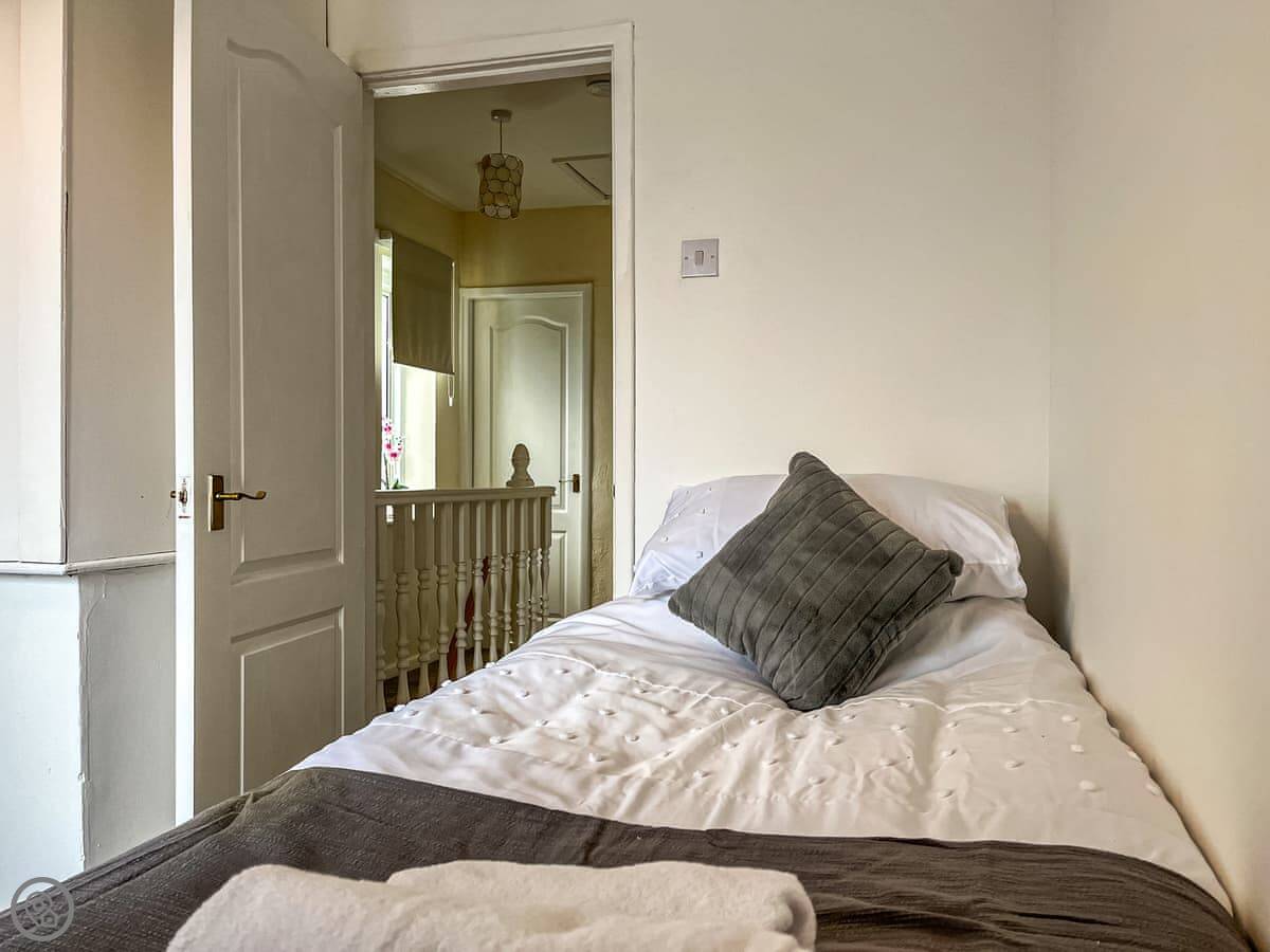 You've got two double bedrooms upstairs, both have TVs. There's a single bedroom too, good for a child. The bathroom has a walk-in shower. There are grab rails fitted.