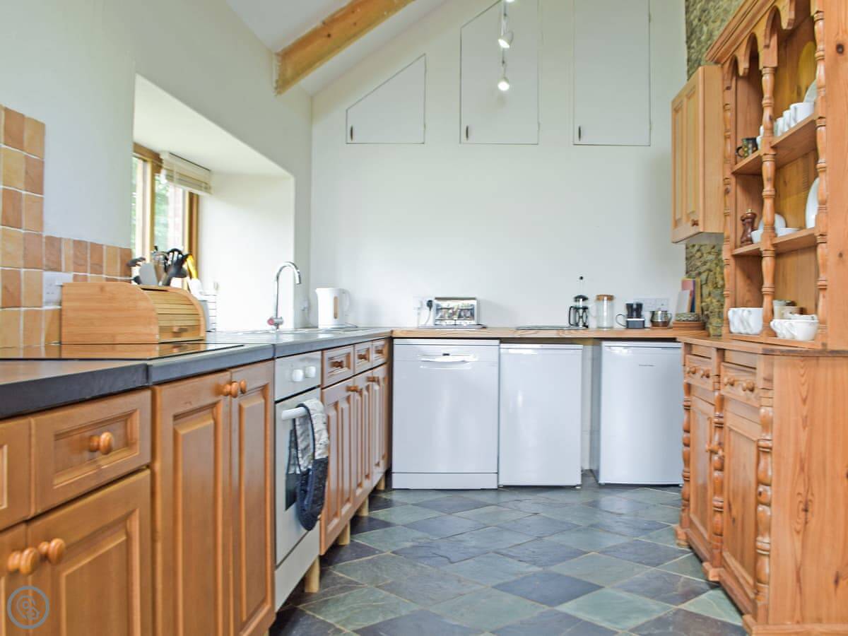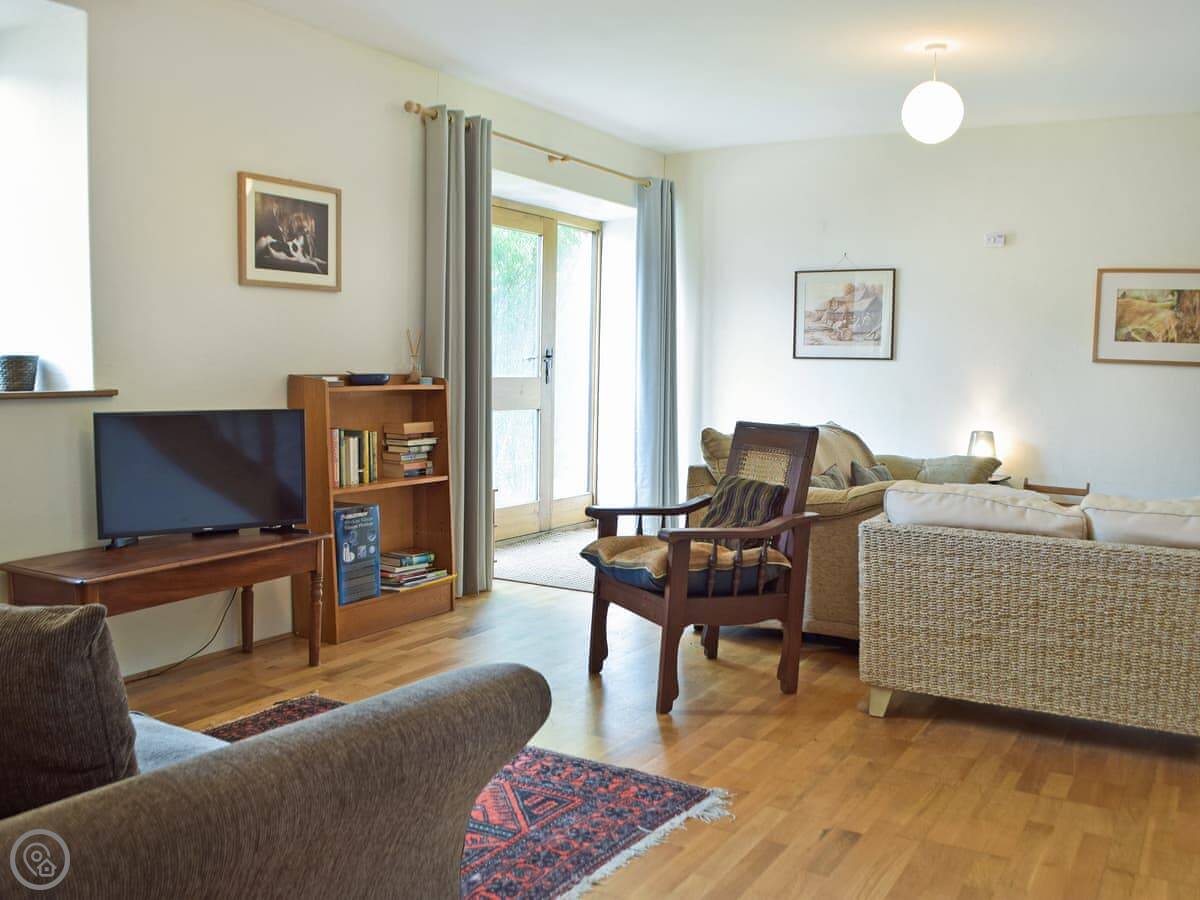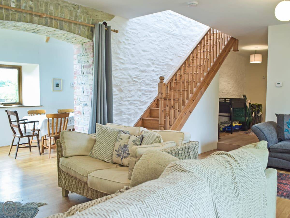 Lower Barn is in Dolgran, near Llandysul in Carmarthenshire. It's a stone barn conversion, semi-detached. You get views over the fields, which are quite nice, especially in the morning.
