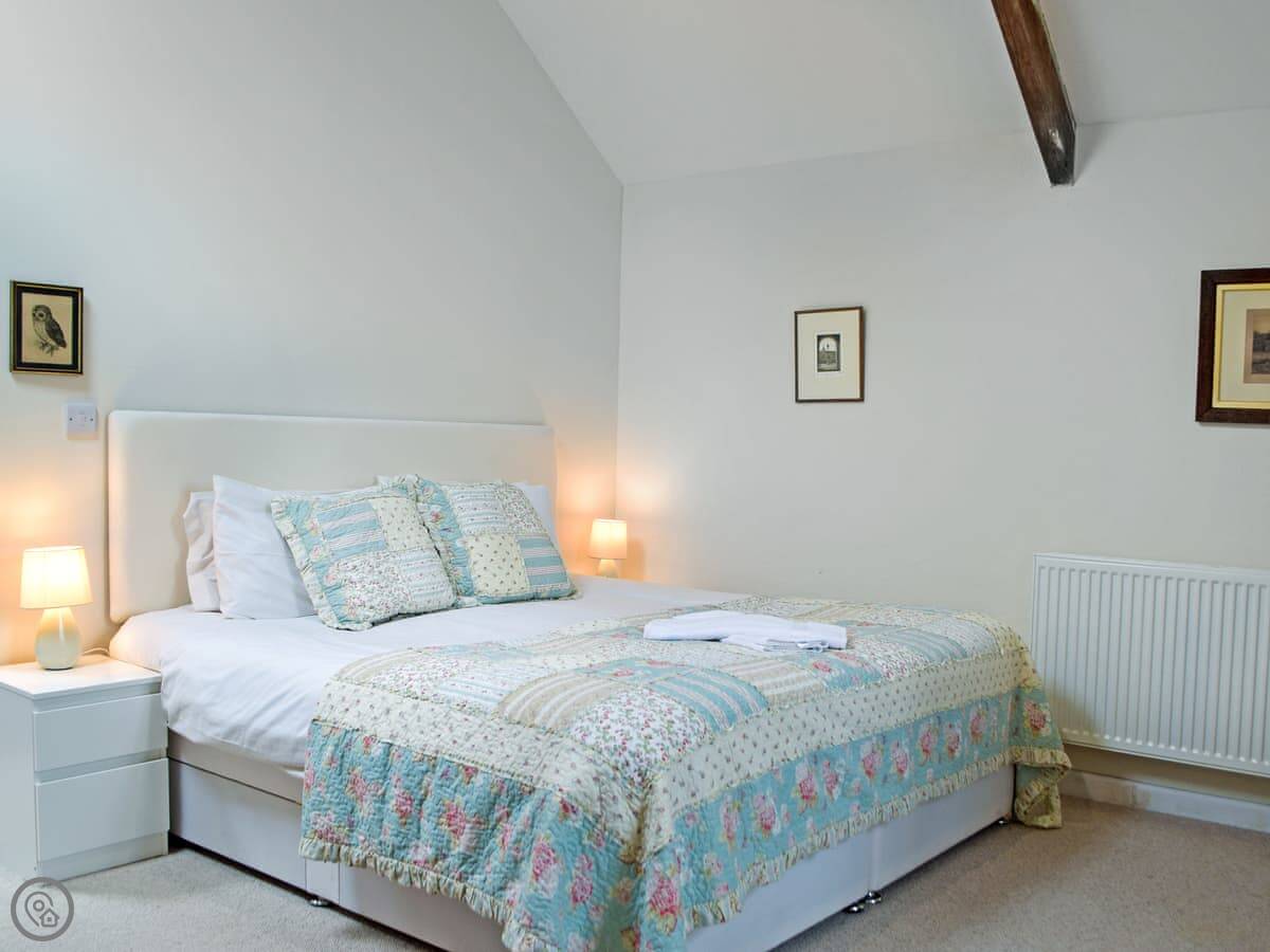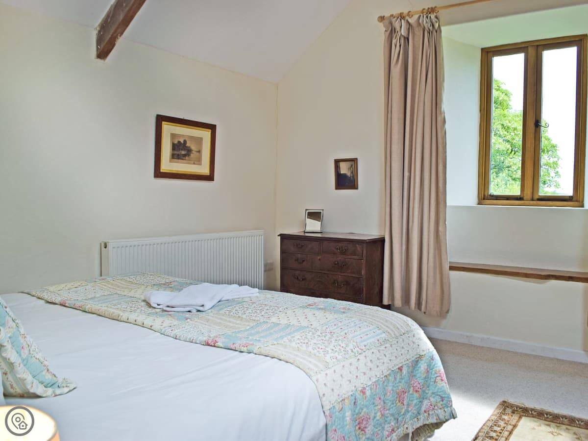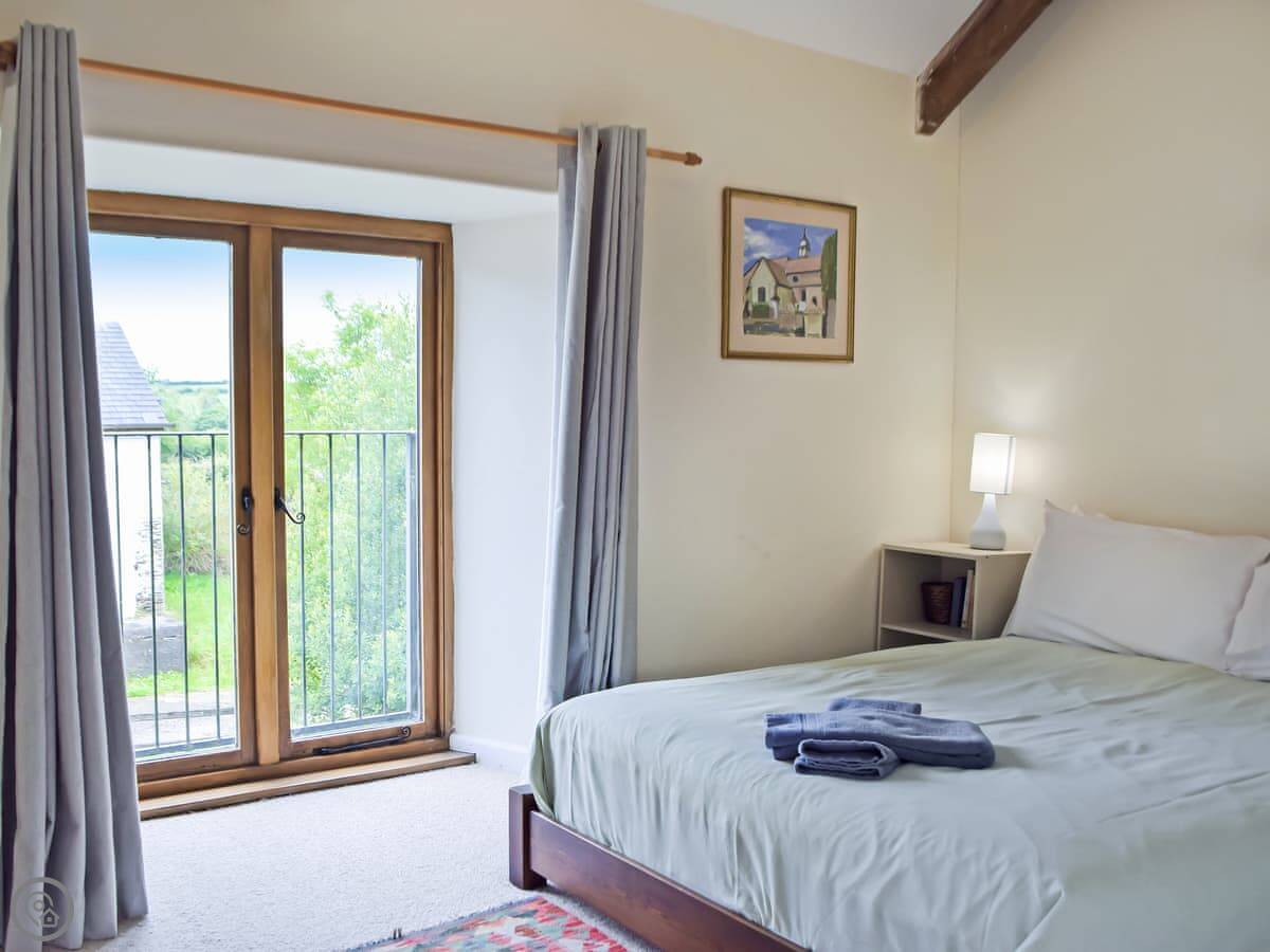 It sleeps up to six people. Three bedrooms, two bathrooms, so that helps. It's a 4 Star rating, so it's comfortable and well-equipped. The main bedroom has a door to a small Juliet balcony.